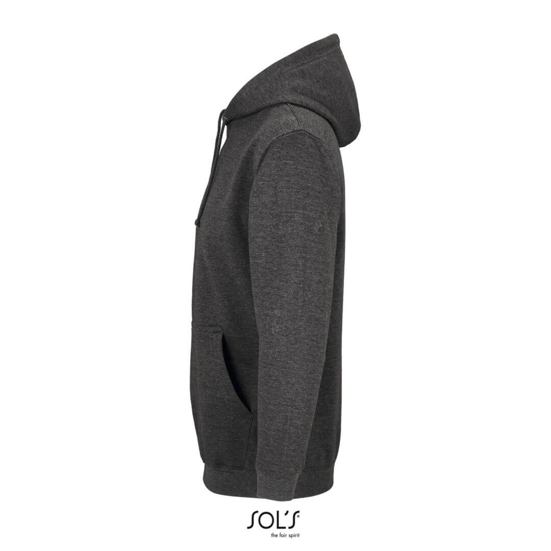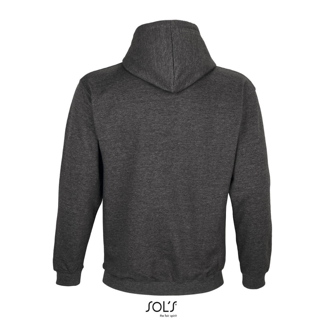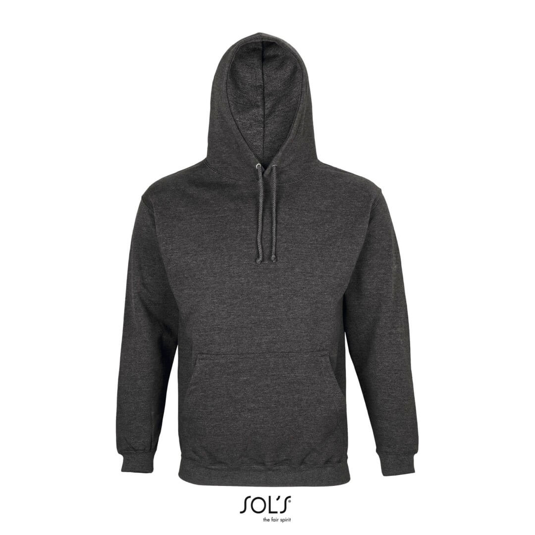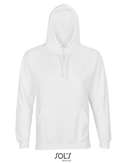 Unisex | Bavlna / recyklovaný polyester | Vsadené rukávy | Rebrovaný golier, manžeta a lem | Vrecko klokanka | Podšitá kapucňa s čipkou v rovnakej farbe a kovovými očkami | Česaný flís | Odtrhávací štítok