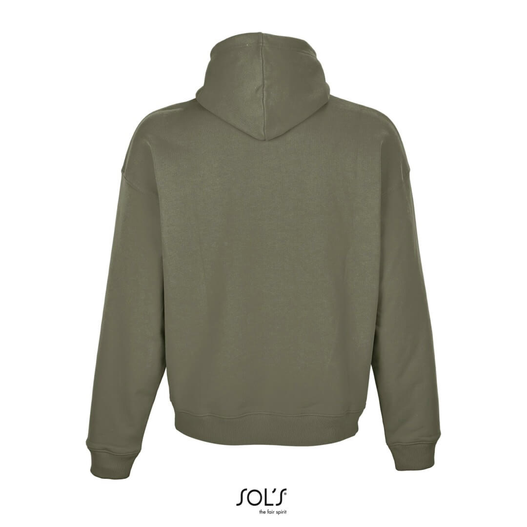 Voľná unisex mikina s kapucňou | Organická bavlna | Francúzske froté | Vsadené rukávy | Bočný šev | Prekríženie na chrbte | Vrecká klokanky | Kapucňa s podšívkou z vonkajšej tkaniny | Spevňovacia páska za krkom