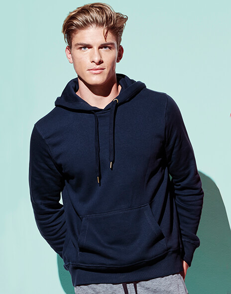 ·280 g/m2 ·80% bavlna, prstencová, 20% polyester ·Grey Heather: 70% bavlna, 30% polyester ·česaná vo vnútri ·dvojvrstvová kapucňa so širokou sťahovacou šnúrkou s kovovým zakončením priechodnými krúžkami (bez obsahu niklu) ·spevňujúca páska na krku ·klokanie vrecko ·moderné široké rebrované manžety a spodný lem s elasténom ·ozdobné ploché švy ·bočné švy ·klasický strih