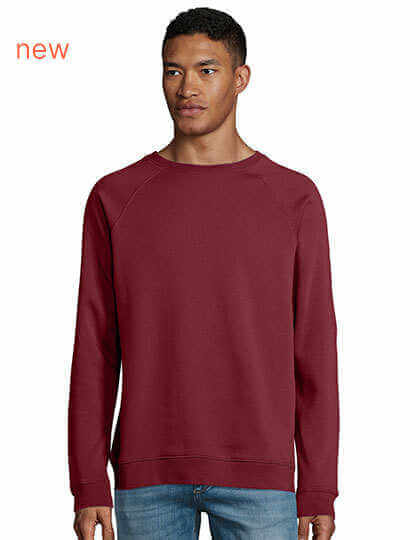 Flís 280 | 80% organická bavlna/20% recyklovaný polyester | 3 nite | Česané vnútorná úprava | Vonkajší materiál: 100% bavlna, rebrovanie: 97% organická bavlna/3% elastan | Organická mikina s okrúhlym výstrihom | Bočný šev | Raglánové rukávy | Polmesiac vnútri výstrihu | Džersejové začisťovacie pásky | 2x2 rebrované manžety, golier a lem | Bez štítku