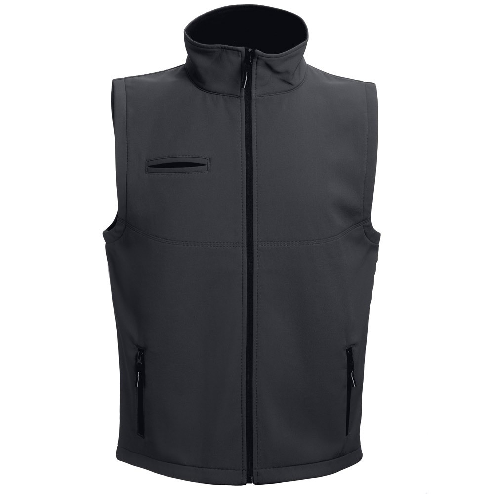 Unisex softshellová vesta. 96 % polyester a 4% spandex (2 vrstvy): 280 g/m². Odolná proti vetru. Vodoodpudivý povlak. 3 vrecká: jednoduché náprsné vrecko a 2 vrecká na zips. Dolná časť chrbta je dlhšia ako predná časť. Možnosť potlače. Veľkosti: S, M, L, XL, XXL, 3XL