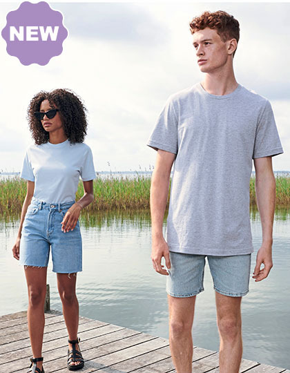 100% bavlna (Charcoal Melange: 60% bavlna/40% polyester), (Light Grey: 93% bavlna/7% viskóza), 150 g/m².