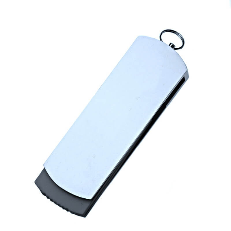 Kovový USB flash disk s otočným krytom konektora. Ideálne pre potlač, alebo laser loga. Možno pripojiť šnúrku, krúžok, alebo karabínku.