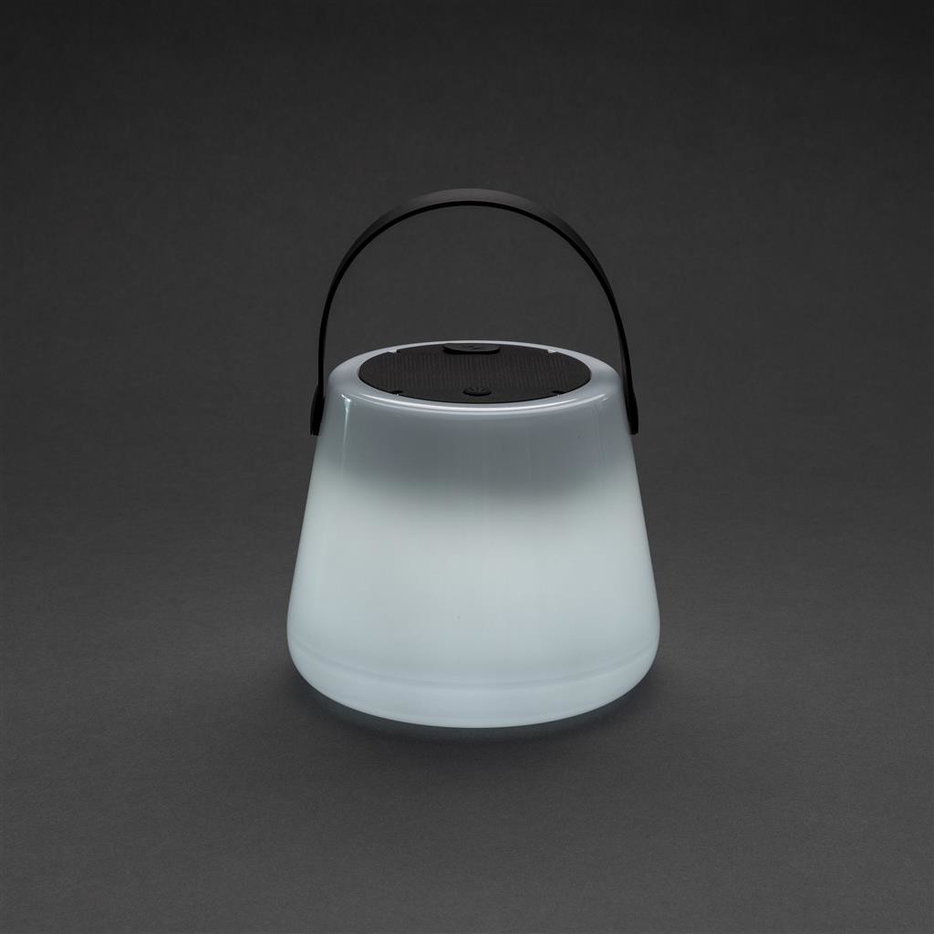 Solárne stolné LED svetlo so zabudovanou batériou s kapacitou 1 200 mAh. Plné nabitie cez USB C kábel za 3 hodiny. Doba svietenia na jedno plné nabitie 20 hodín. 10 hodín nabíjania na slnku poskytuje dobu svietenia 3-4 hodiny. Vodeodolné (IPX 4). Vyrobené z RCS recyklovaného ABS plastu. RCS (Recycled Claim Standard) je globálny štandard, ktorý umožňuje overiť použitie recyklovaného materiálu v produkte naprieč celým dodávateľským reťazcom. Celkový podiel recyklátu podľa váhy produktu: 71 %. 1 batérií typu 18650 súčasťou balenia.