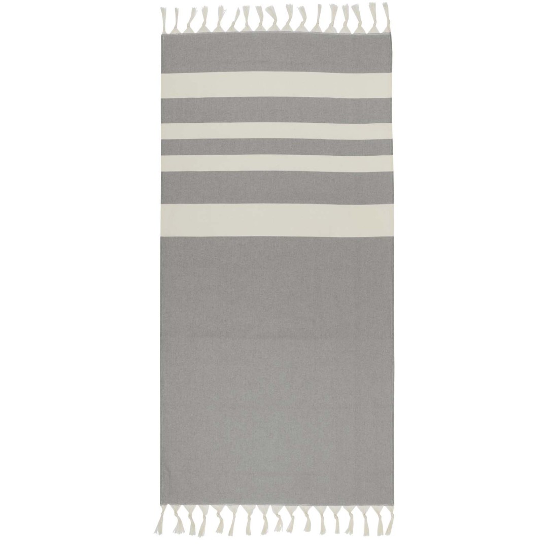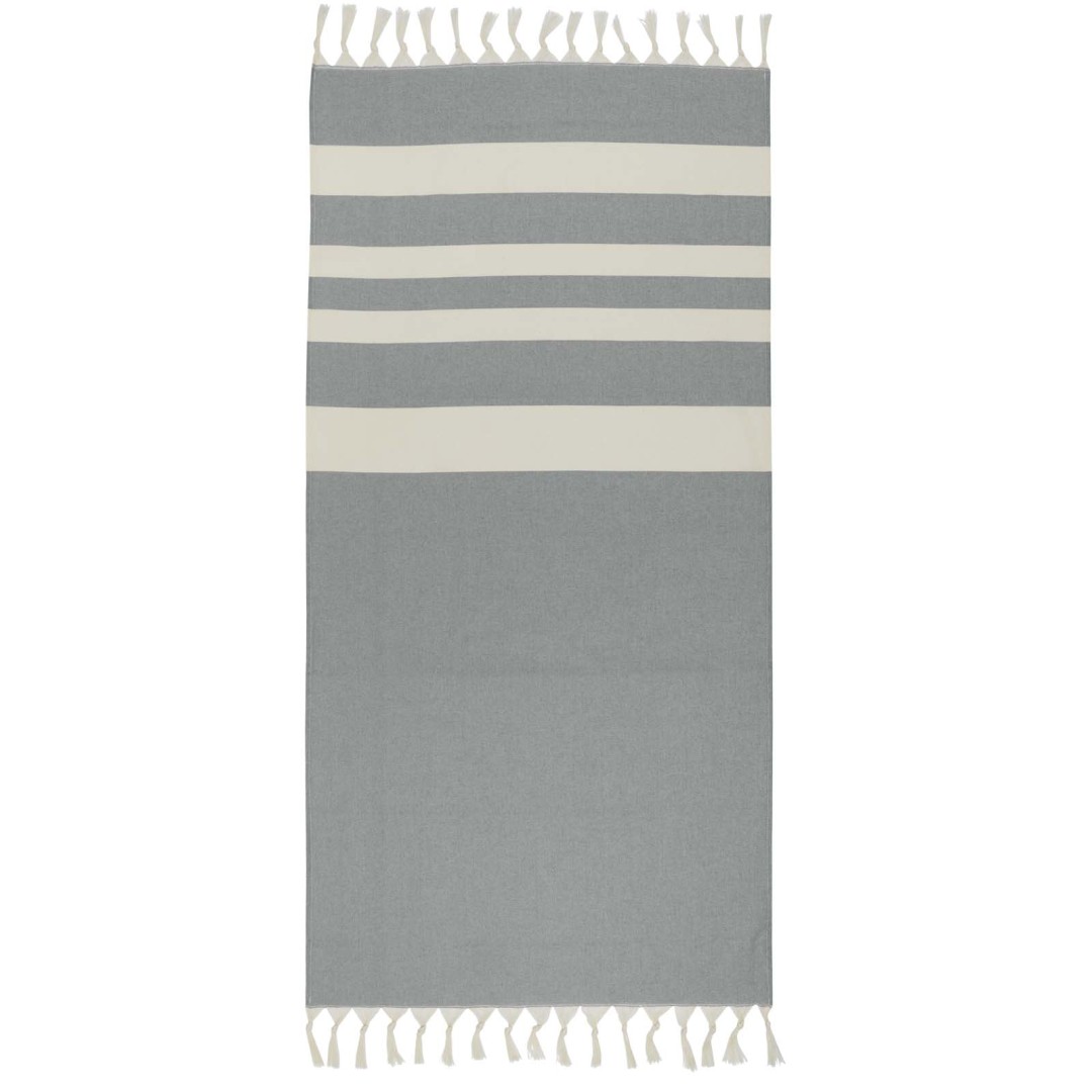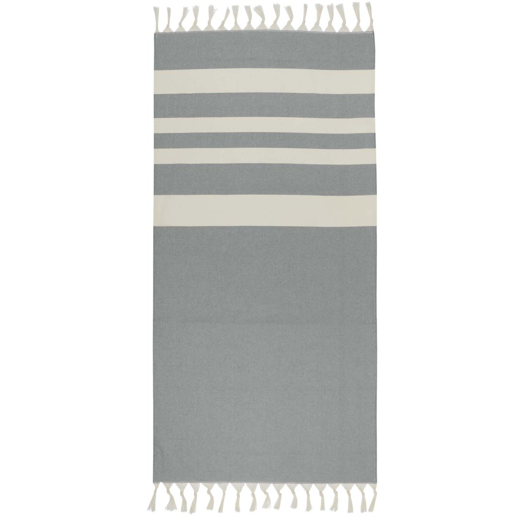 Uterák do orientálnych kúpeľov Anders poskytuje luxus a pohodlie vďaka veľkorysým rozmerom (147 × 75,5 cm), ktoré zaisťujú dostatočné pokrytie, či už ležíte pri bazéne alebo si užívate deň na pláži. Uterák s elegantnými strapcami na oboch koncoch je vyrobený z 30% bavlny, 35% recyklovanej bavlny s certifikáciou GRS a 35% recyklovaného polyesteru s certifikáciou GRS, 180 g/m².