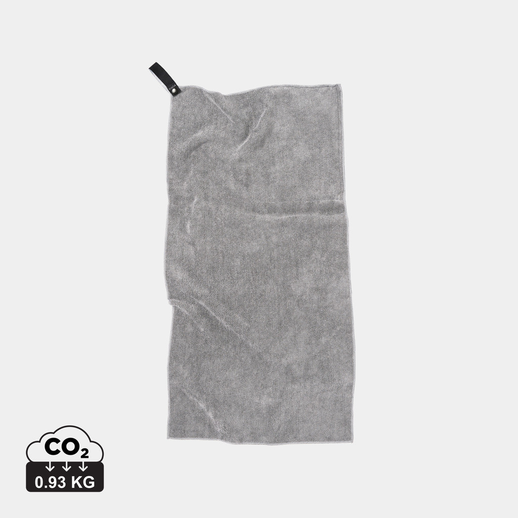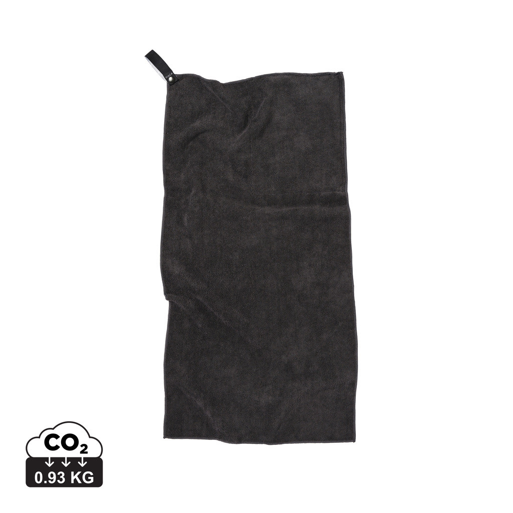 Vyrobený z mikrovlákna a čiastočne z recyklovaných PET fliaš. Ľahký a kompaktný. Jedinečná štruktúra froté tkaniny dokáže absorbovať viac vody a schne trikrát rýchlejšie ako tradičný uterák. Ideálne pre outdoorové aktivity, šport a cestovanie. Táto veľkosť je vynikajúca na použitie v telocvični. Na výrobu tohto uteráka boli použité tri recyklované PET fľaše.