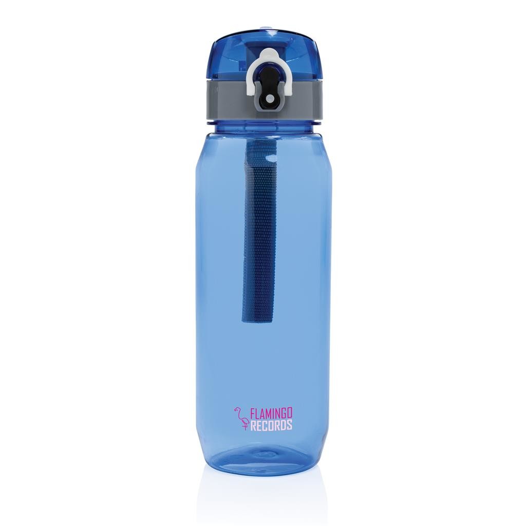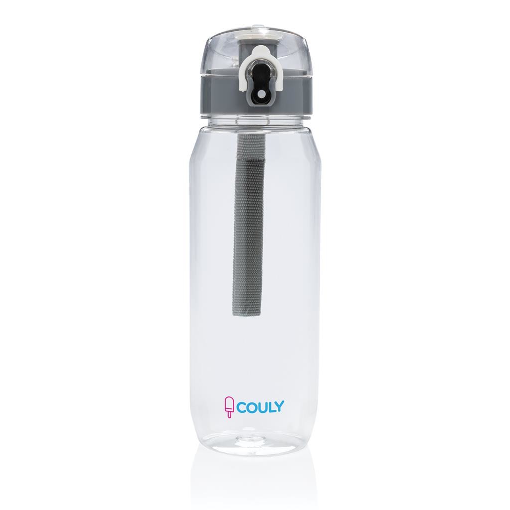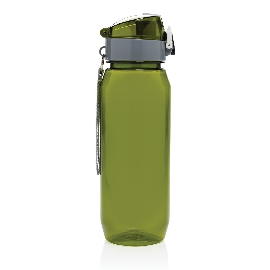 Fľaša na vodu s nepriepustným uzamykateľným uzáverom. Jednoduché ovládanie aj jednou rukou. Vyrobená z RCS recyklovaného PET plastu. RCS (Recycled Claim Standard) je globálny štandard, ktorý umožňuje overiť použitie recyklovaného materiálu v produkte naprieč celým dodávateľským reťazcom. Celkový podiel recyklátu podľa váhy produktu: 73 %. Len na studené nápoje a na ručné umývanie. Bez BPA. Objem: 800 ml. Balené v FSC® kraftovej darčekovej krabičke.