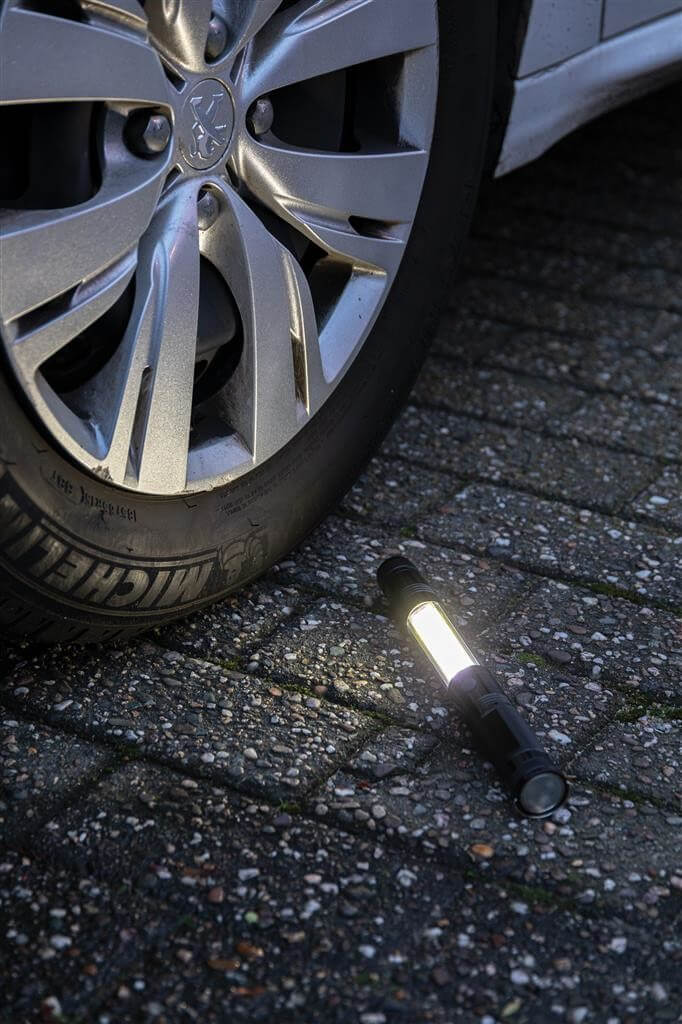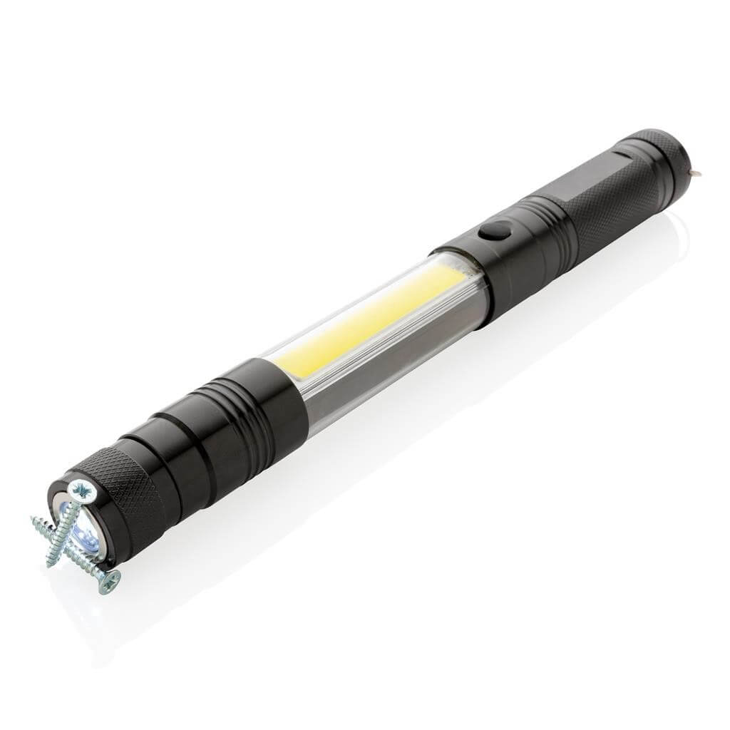 Praktická multifunkčná baterka s 3 LED (10l) pre silné bodové osvetlenie a dodatočným COB (80l) na osvetlenie priestoru. Hliníkové teleskopické telo s možnosťou predĺženia 26 cm až na 64cm. Magnetické konce. Jeden vhodný pre upevnenie svietidla, druhý na zber zapadnutých kovových predmetov. Po predĺžení je magnetická hlava flexibilná pre nastavenie do akéhokoľvek smeru. Vrátane batérií pre okamžité použitie. 3 batérií typu AAA sú súčasťou balenia.