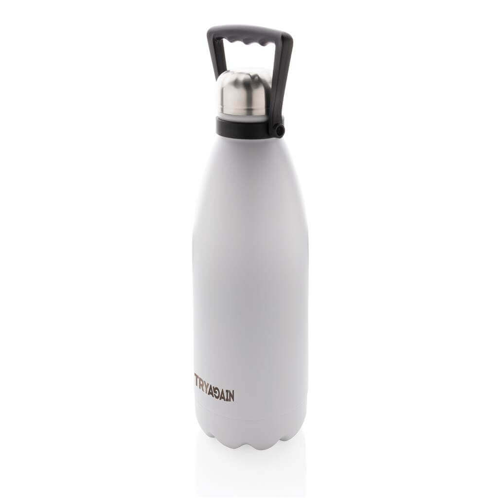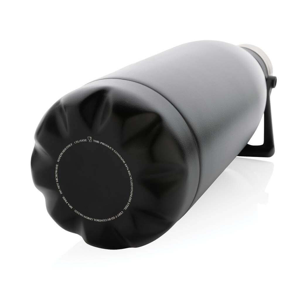 Veľká termofľaša s objemom 1,5 litra vyrobená z RCS recyklovanej nehrdzavejúcej ocele. RCS (Recycled Claim Standard) je globálny štandard, ktorý umožňuje overiť použitie recyklovaného materiálu v produkte naprieč celým dodávateľským reťazcom. Celkový podiel recyklátu podľa váhy produktu: 88 %. Izolácia s dvojitou stenou uchová nápoje horúce až 5 hodín a studené až 15 hodín. Štýlové práškové lakovanie tela fľaše, praktické madlo na pohodlné nosenie. Objem: 1 500 ml. Bez BPA. Balené v FSC® kraftovej darčekovej krabičke.