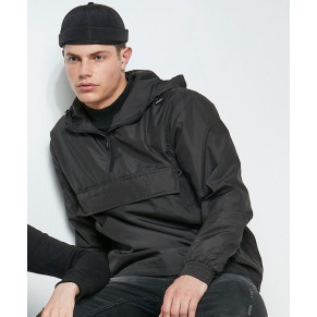 Stojatý golier s 1/4 zipsom, kapucňa so šnúrkou a zarážkou, kapucňa s vnútorným golierom, polmesiacová podsádka na krku, presahujúca ramená, elastické manžety na rukávoch a spodnom leme, široké náprsné vrecko s chlopňou a zipsom, ľah prateľné na 30 °, nemožno sušiť v sušičke.