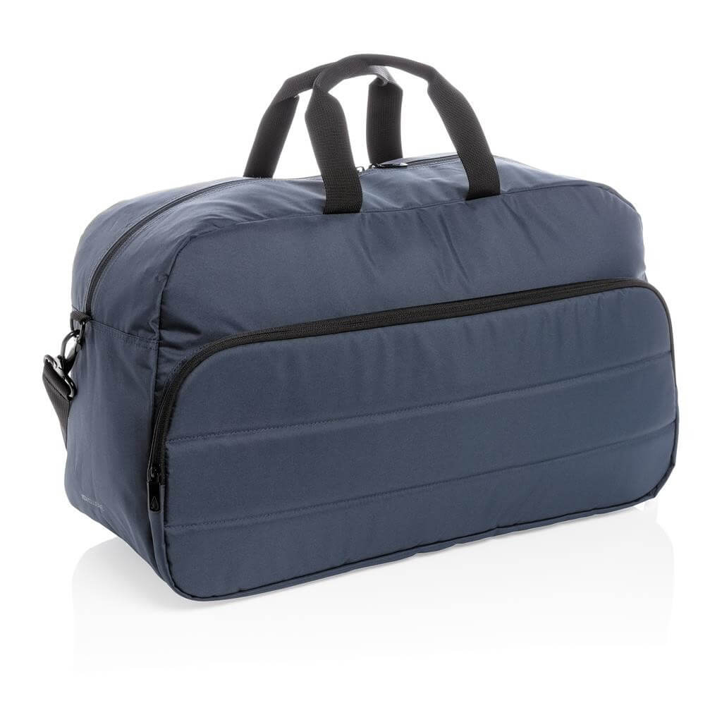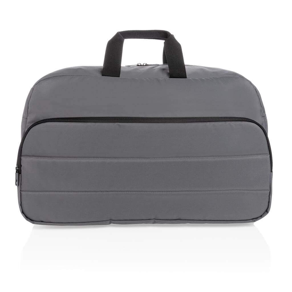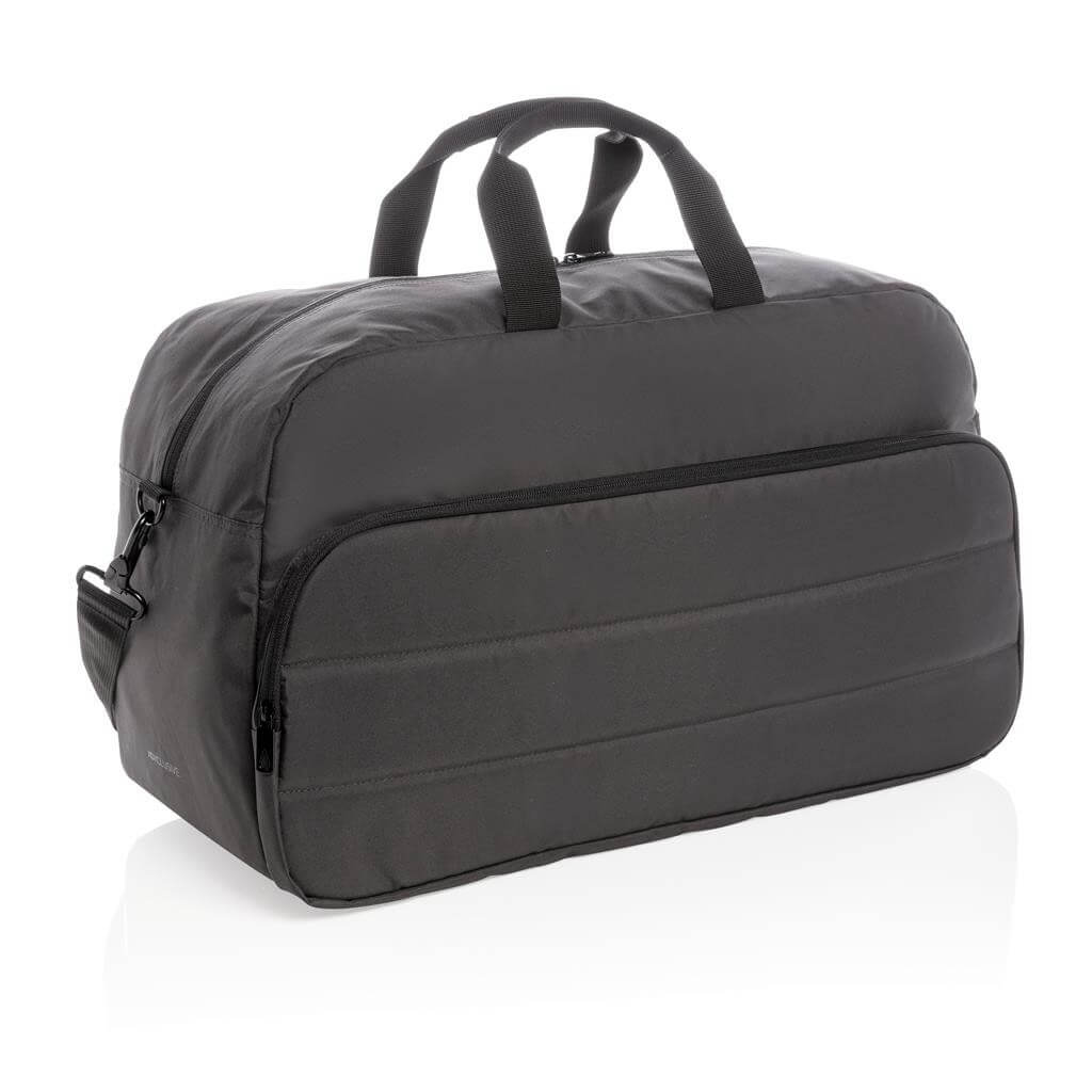 Moderná víkendová taška v jednoduchom čistom dizajne ideálnym na cestovanie, vyrobená z RPET AWARE ™. Rozmerný hlavný oddiel poskytuje dostatok priestoru na krátky výlet, 2 sieťové vrecká pre organizáciu drobností. Predné vrecko na zips s 2 malými vreckami a 2 pútkami na perá. Vonkajšia časť i vnútorná podšívka sú vyrobené zo 100% polyesteru AWARE ™ získaného z recyklovaných PET fliaš. AWARE ™ využíva skutočne recyklované materiály, kde sú použité špeciálne technológie dohľadateľné od ich zdroja. Recyklácia má pozitívny vplyv na životné prostredie a pri výrobe šetrí obrovské množstvo vody. Bez PVC.