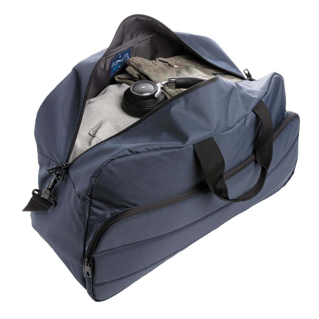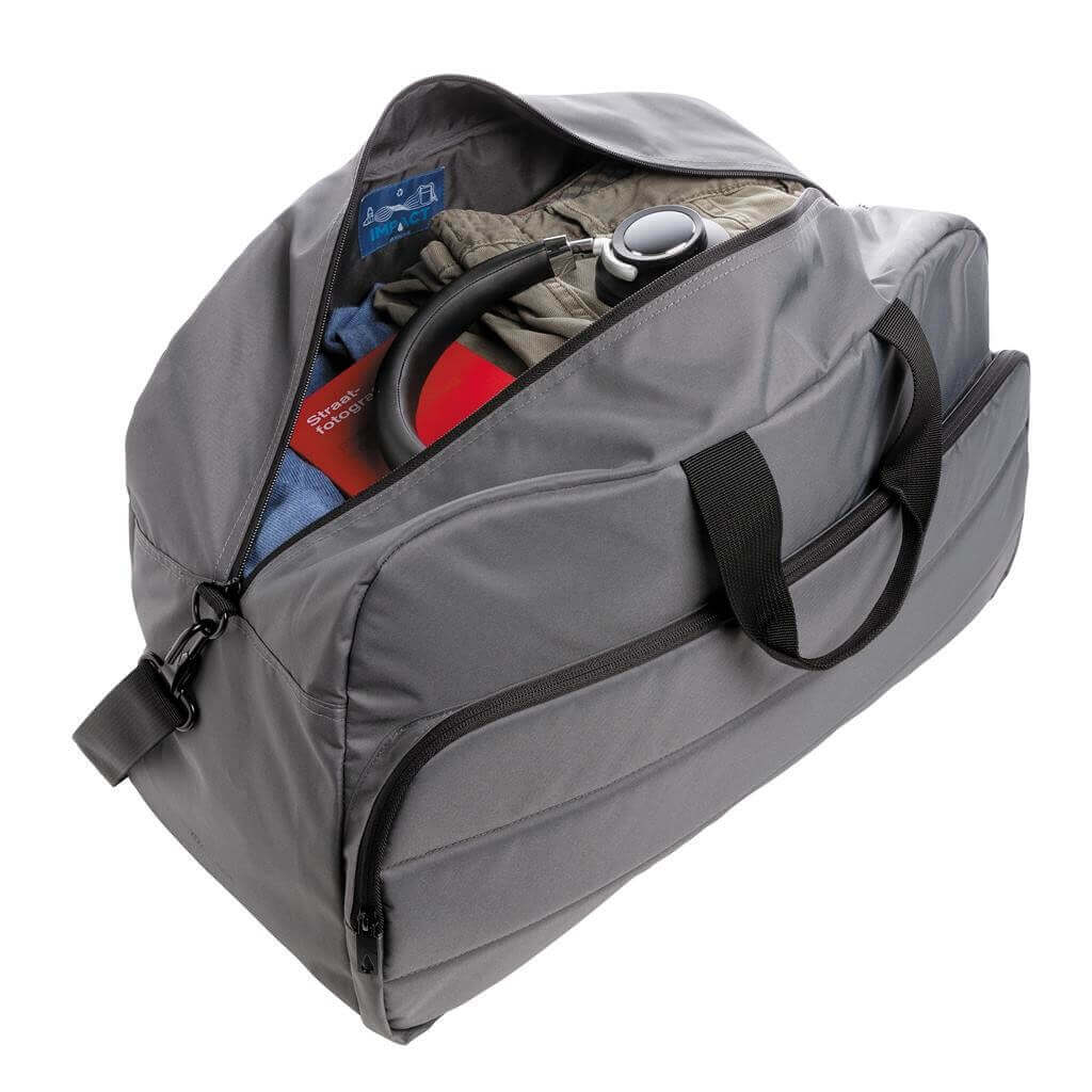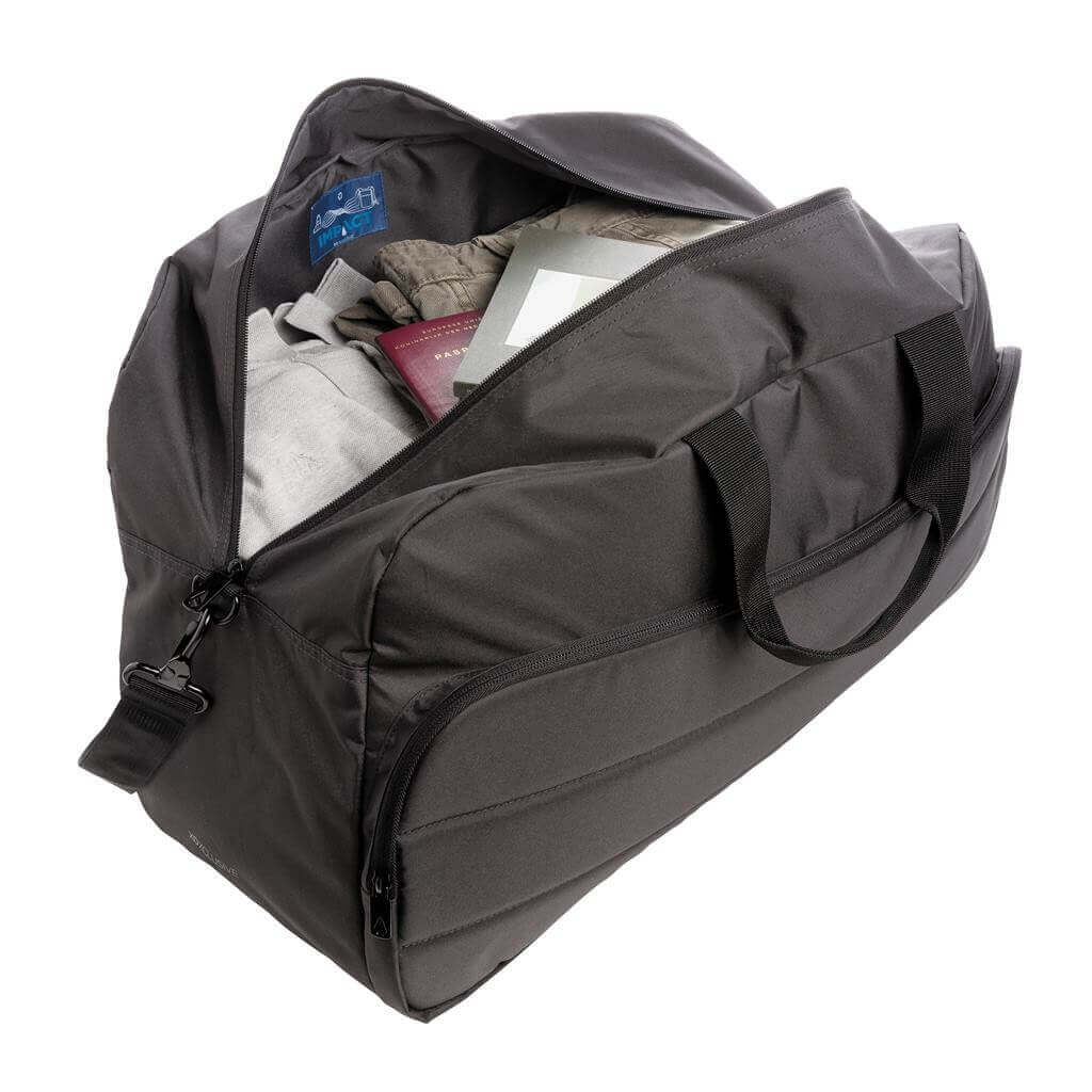 Moderná víkendová taška v jednoduchom čistom dizajne ideálnym na cestovanie, vyrobená z RPET AWARE ™. Rozmerný hlavný oddiel poskytuje dostatok priestoru na krátky výlet, 2 sieťové vrecká pre organizáciu drobností. Predné vrecko na zips s 2 malými vreckami a 2 pútkami na perá. Vonkajšia časť i vnútorná podšívka sú vyrobené zo 100% polyesteru AWARE ™ získaného z recyklovaných PET fliaš. AWARE ™ využíva skutočne recyklované materiály, kde sú použité špeciálne technológie dohľadateľné od ich zdroja. Recyklácia má pozitívny vplyv na životné prostredie a pri výrobe šetrí obrovské množstvo vody. Bez PVC.