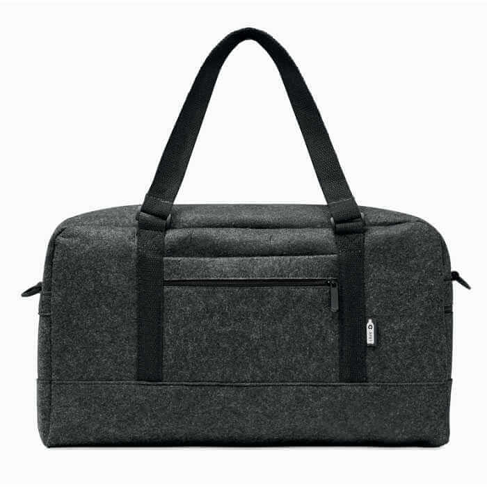 Športová/fitness alebo víkendová taška z plsti RPET s predným vreckom na zips. V tejto štýlovej plstenej taške si môžete vziať so sebou do posilňovne všetko svoje cvičebné vybavenie. Prenášajte ju za plátené uši alebo použite odnímateľný a nastaviteľný ramenný popruh. Zatiaľ čo cvičíte, môžete si do predného vrecka so zipsom uschovať menšie predmety alebo osobné veci. Taška je vyrobená z recyklovaného PET plastu.