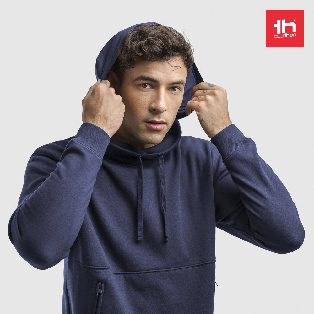 Unisex mikina s kapucňou. 50% bavlna a 50% polyester: 320 g/m². S rolákom a taftovou kapucňou zabudovanou v golieri (s plastovým zapínaním). Rebrovaný úplet 1x1 na zápästiach a páse. 2 vrecká s plastovým zapínaním. Veľkosti: XS, S, M, L, XL, XXL
