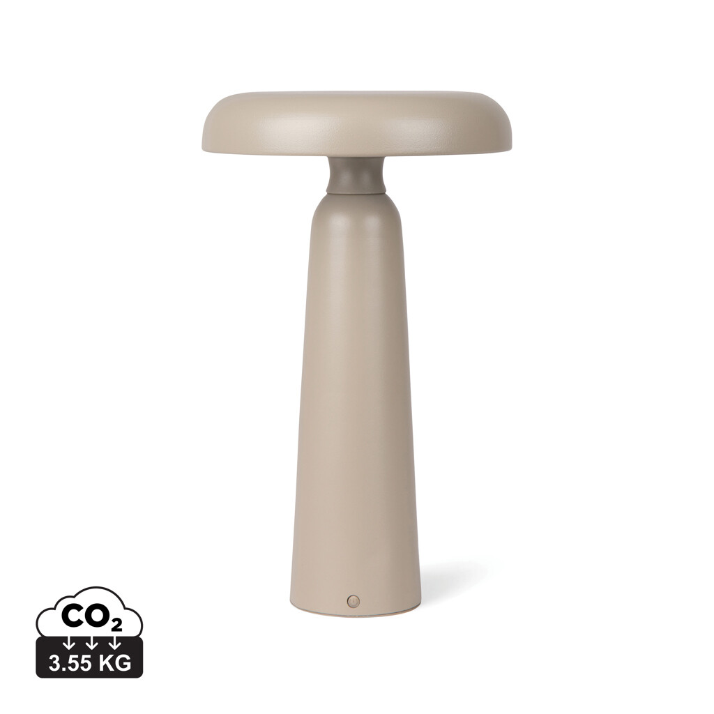Kompaktná lampa s moderným dizajnom, ktorý dodáva výrobku charakter aj štýl. Vyrobená z kovu a recyklovaného ABS. Lampa má na vrchu dotykovú funkciu na prepínanie medzi teplým svetlom, bielym svetlom a teplým bielym svetlom. Nabíja sa cez USB-C, súčasťou balenia je 30 cm nabíjací kábel TPE Type-C na USB-A a poskytuje až 8 hodín svietenia. Certifikácia RCS (Recycled Claim Standard) zaručuje, že celý dodávateľský reťazec recyklovaných materiálov je certifikovaný. Celkový obsah recyklovaných materiálov je založený na celkovej hmotnosti výrobku. Tento výrobok obsahuje 7 % recyklovaného ABS s certifikáciou RCS.