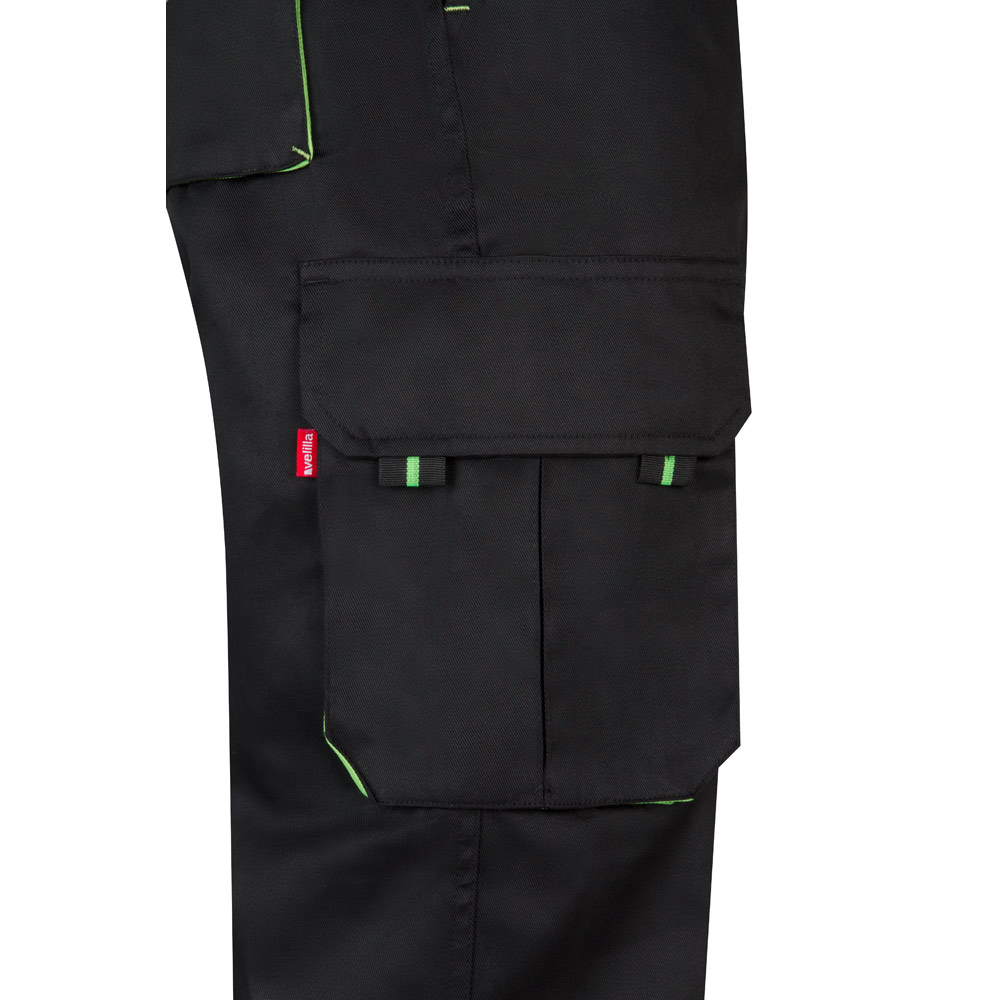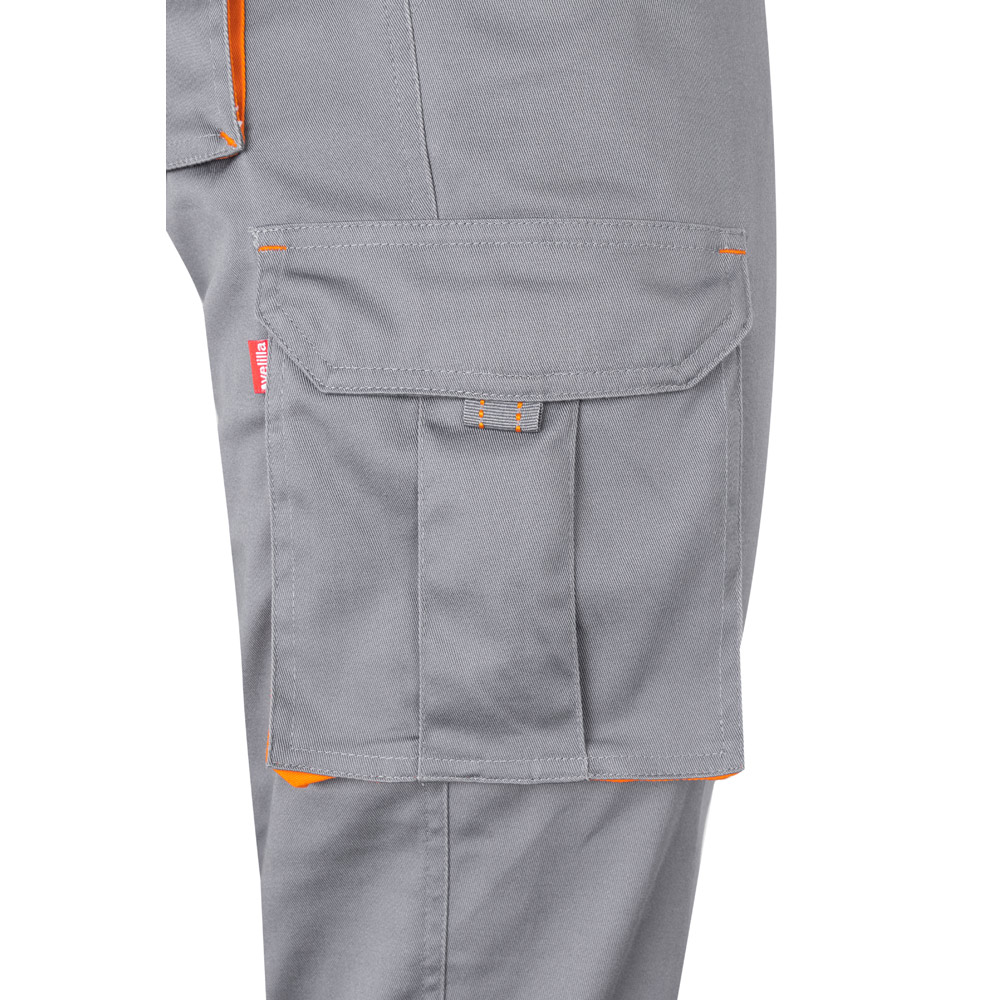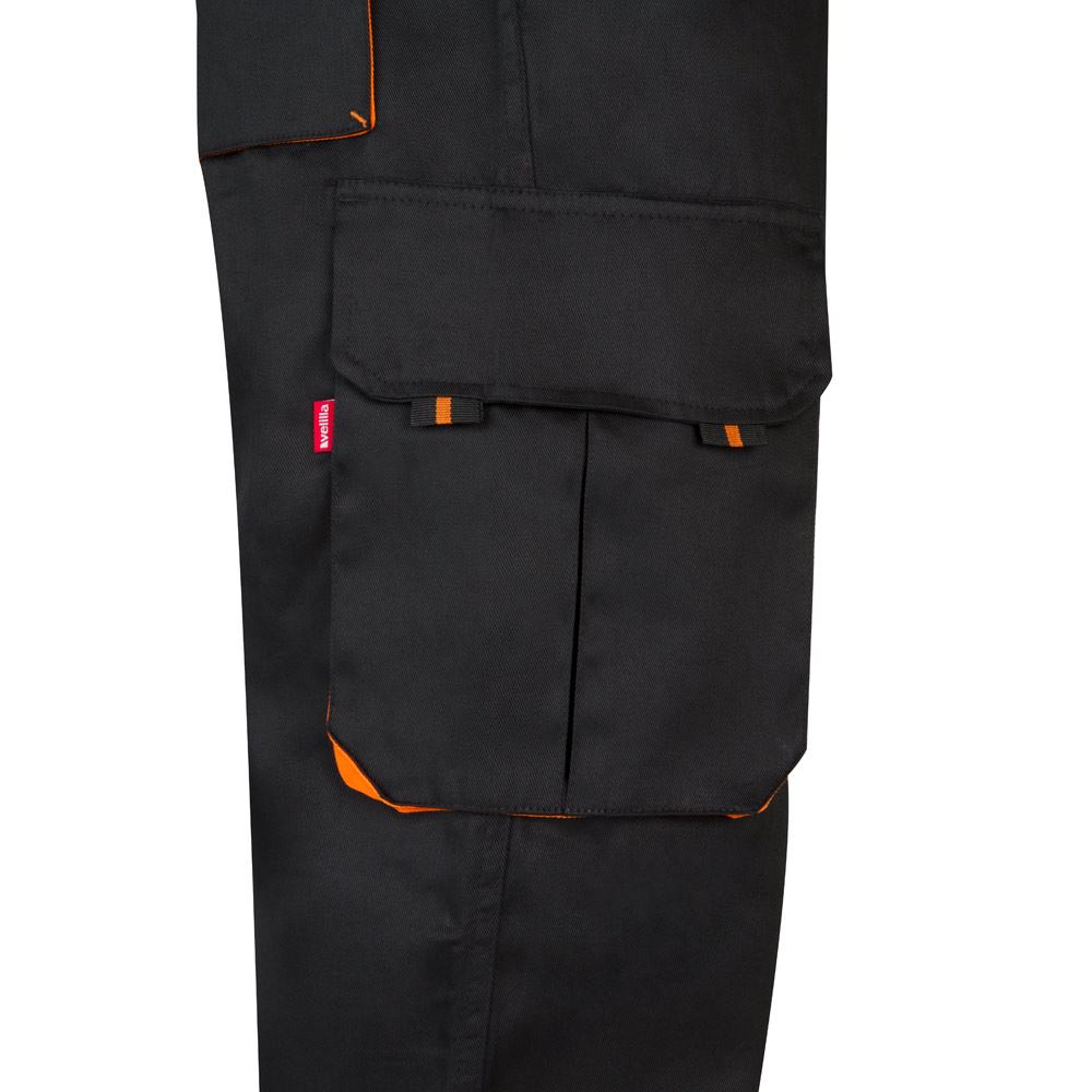 Dvojfarebné keprové nohavice s viacerými vreckami (200 g/m²) z bavlny (35 %) a polyesteru (65 %). S elastickým pásom a kontrastnou farbou na klinoch, sťahovačoch a prešívaní. Obsahuje šesť vreciek: (2 francúzske vrecká, 2 bočné klinové vrecká a 2 zadné klinové vrecká). Veľkosť: 34, 36, 38, 40, 42, 44, 46, 48, 50, 52, 54, 56, 58, 60