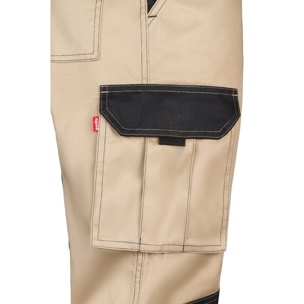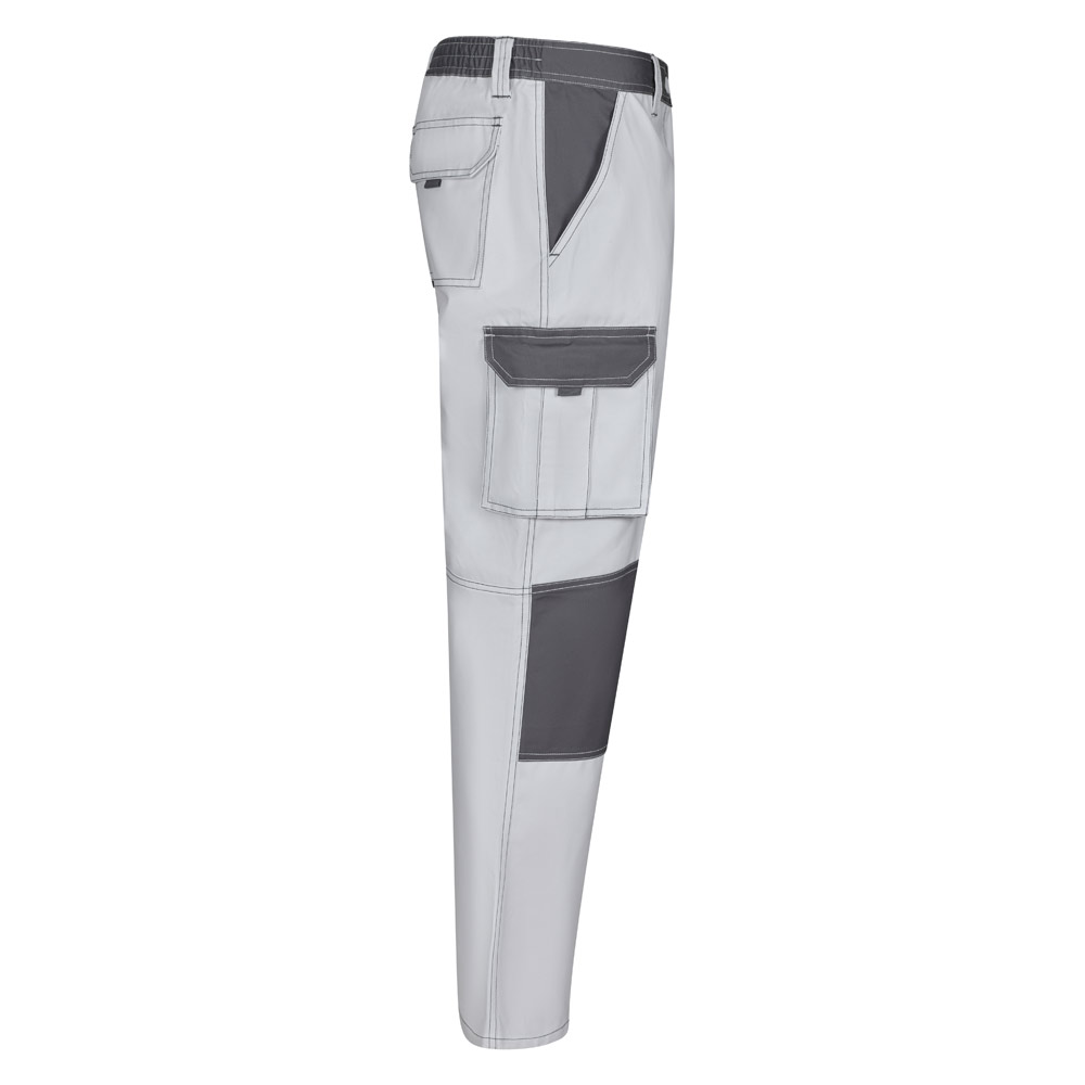 Dvojfarebné keprové nohavice s viacerými vreckami (240 g/m²), z bavlny (35 %) a polyesteru (65 %). Strih Slim Fit, elastický pás a látková výstuž na kolenách a chrbte. Obsahuje šesť vreciek (2 francúzske vrecká, 2 bočné klinové vrecká a 2 zadné klinové vrecká). Veľkosť: 34, 36, 38, 40, 42, 44, 46, 48, 50, 52, 54, 56, 58, 60