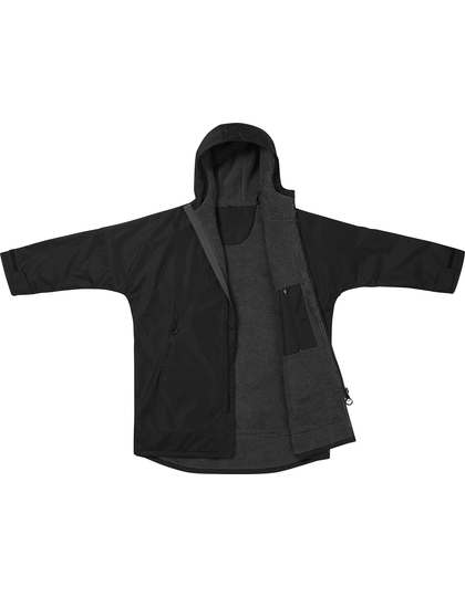Telo: 100 % polyester – 208 g/m², podšívka: 100 % polyester Sherpa – 295 g/m², podšívka vrecka: 100 % polyesterový flís Polar – 190 g/m², taška na prenášanie: 100 % polyester | Viacúčelová bunda | Vodeodolná vonkajšia strana s kapucňou | Nastaviteľné popruhy na zápästie | Ochrana brady | Príjemné flísové vnútro z materiálu Sherpa absorbuje vlhkosť a udržuje teplo | Nadmerná veľkosť | Ideálna na prezliekanie do teplého a suchého oblečenia | Dvojcestný zips | Niekoľko hlbokých vreciek vnútri aj zvonku | Dodáva sa s taškou umožňujúcou zmenu značky.