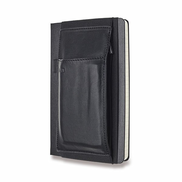 Unikátny doplnok z polyuretánu, ktorý premení a štýlovo "oblečie" váš zápisník Moleskine, takže máte všetko dôležité vždy pohromade. Šírka 9 cm, výška vhodná pre zápisníky Moleskine veľkosti L. Predné a zadné vrecko, bočné vrecko na zips, pútko na písaciu potrebu.