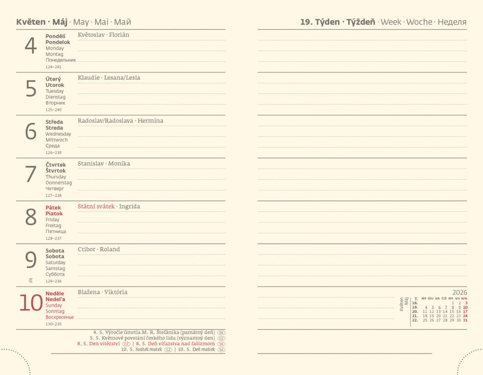 Kalendárium: týždenné vreckové + pútko na pero + papier bloku chamois