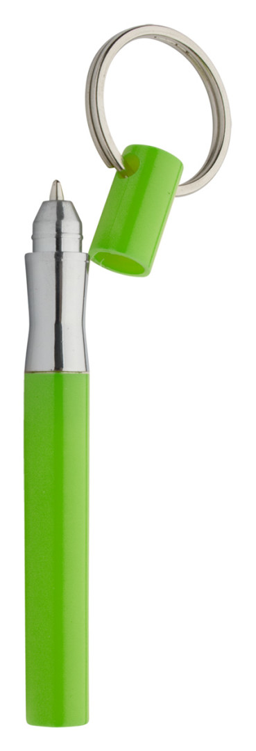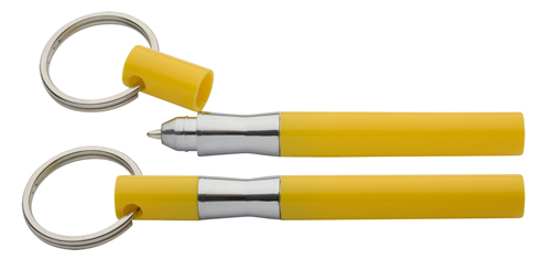 Plastové guličkové mini pero s pevným farebným obalom, chromovým vzhľadom, kovovým krúžkom; dodávané s modrou tuhou.