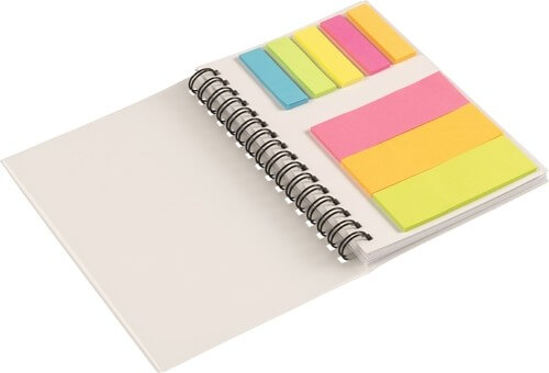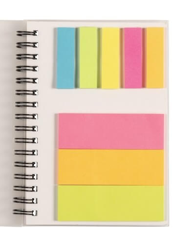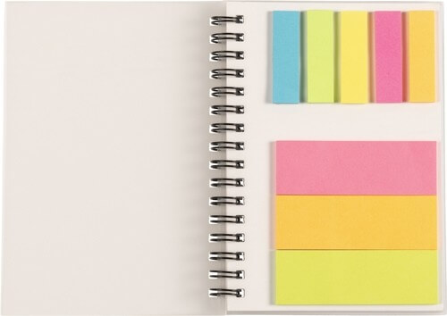 Matný pevný kryt na prednej a zadnej strane. Samolepiace poznámky majú každá 25 strán. Notebook má 50 prázdnych listov.