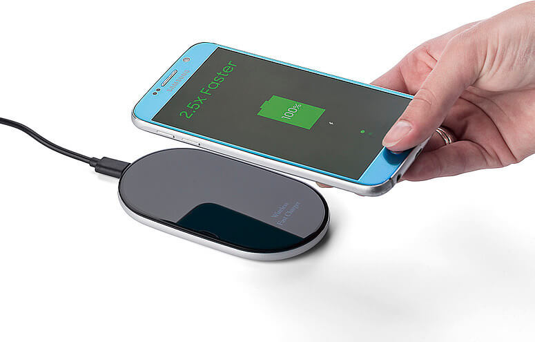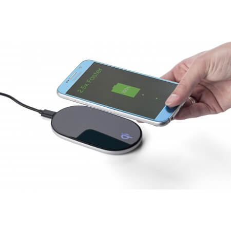 Bezdrôtová rýchla nabíjačka. Vstup 5V-2A alebo 9V-1,67A. Výstup 5V-5W.9V-10W (max.). Podložka nabíja zariadenia bezdrôtovo. Má napájací port USB-C a obsahuje konektorový kábel. Ručné jazyky: angličtina, holandčina, nemčina, francúzština, španielčina a taliančina.