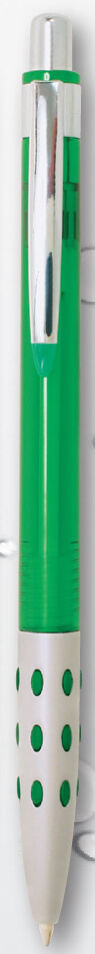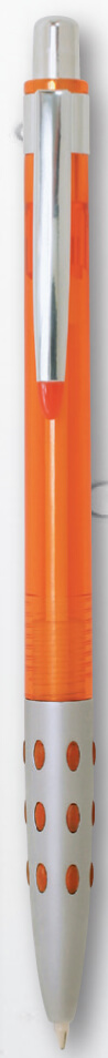 Transparentné guľôčkové pero s plastovým telom, kovovým klipom a kovovým úchopom. Šírka stopy 0,7 mm. Náplň AX-7R