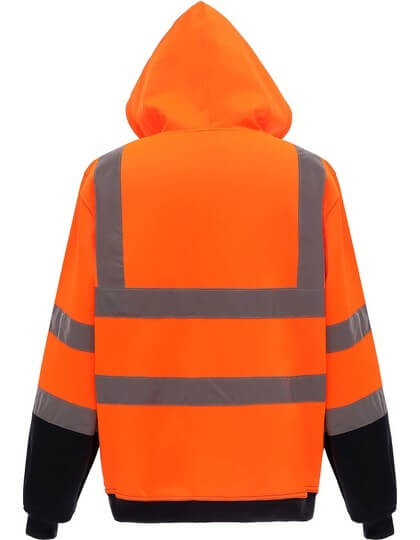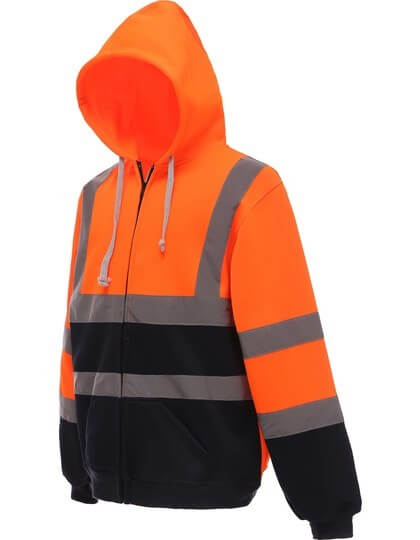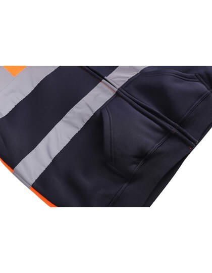 Výstražné žlté a oranžové v súlade s EN ISO 20471 trieda 3 & oranžové tiež v súlade s GO/RT 3279 na využitie v železnicnom priemysle | Vyrobené z 280 g/m2 jemného úpletu (single jersey) z polyesteru s nežmolkovacou úpravou | Dve 5 cm široké reflexné pásky na hrudníku a rukách a cez obe ramená | Kapucňa so sťahovaním na šnúrku | Zapínanie vpredu na zips | Dve vrecká na zahranie rúk | Dvojité prešívanie