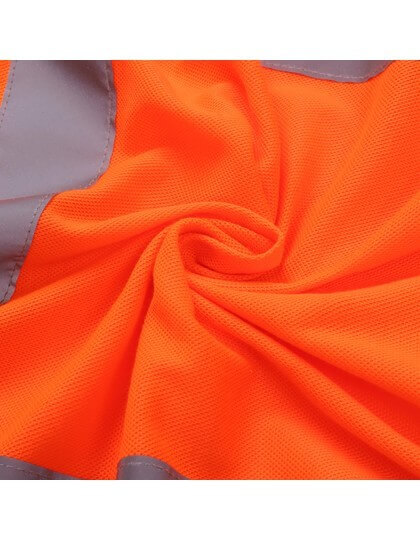 Spĺňa požiadavky normy EN ISO20471:2013 triedy 3 a farba Orange spĺňa tiež požiadavky GO/RT 3279 | Okolo trupu a paží dva reflexné pásiky so šírkou 5 cm, jeden pásik cez každé rameno | Kontrastný pletený rebrovaný golier a manžety v námornícky modrej farbe | Lišta s 3 gombíkmi | Prešívanie dvojitým stehom | Výrobca zaručuje reflexné vlastnosti podľa európskych štandardov po dobu 25 pracích cyklov na 40 °C