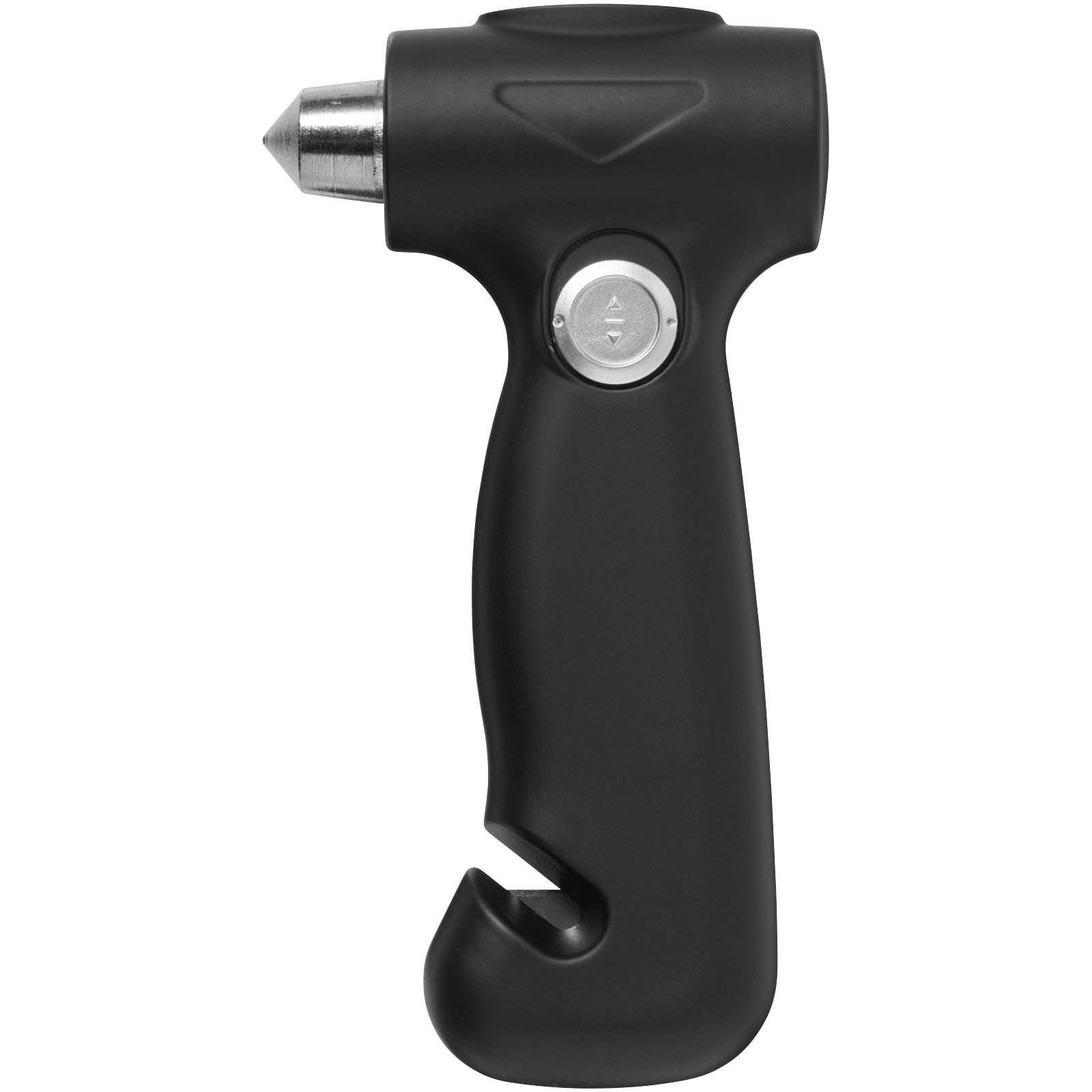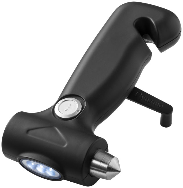 Záchranný nástroj 3-v-1 do automobilov. Záchranný bezpečnostný nástroj 3-v-1 obsahuje kladivko na rozbitie okna, rezačku bezpečnostného pásu a blikačku s dynamom. Páčka na výrobu energie. Nie sú potrebné žiadne externé batérie. Rukoväť s pogumovaným designom pre ľahké uchopenie. Balené v darčekovej kazete STAC. Vstavaná dobíjacia batéria. Exkluzívne prevedenie. ABS Plast s mäkkčeným povlakom.