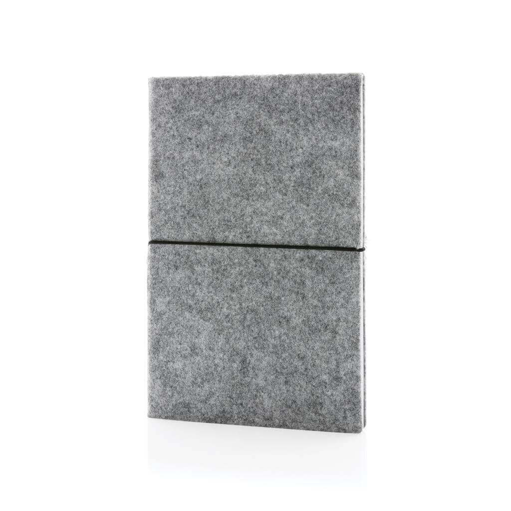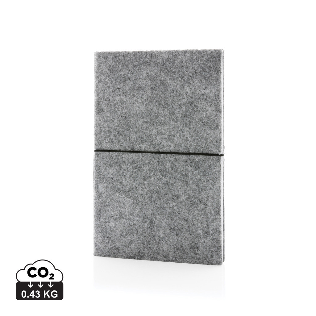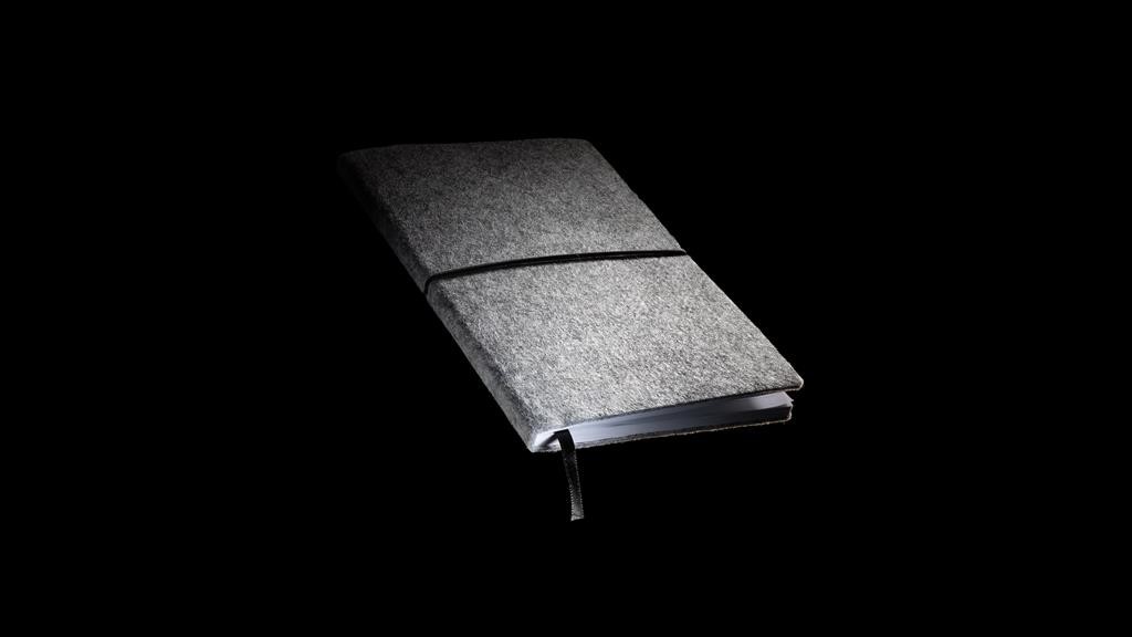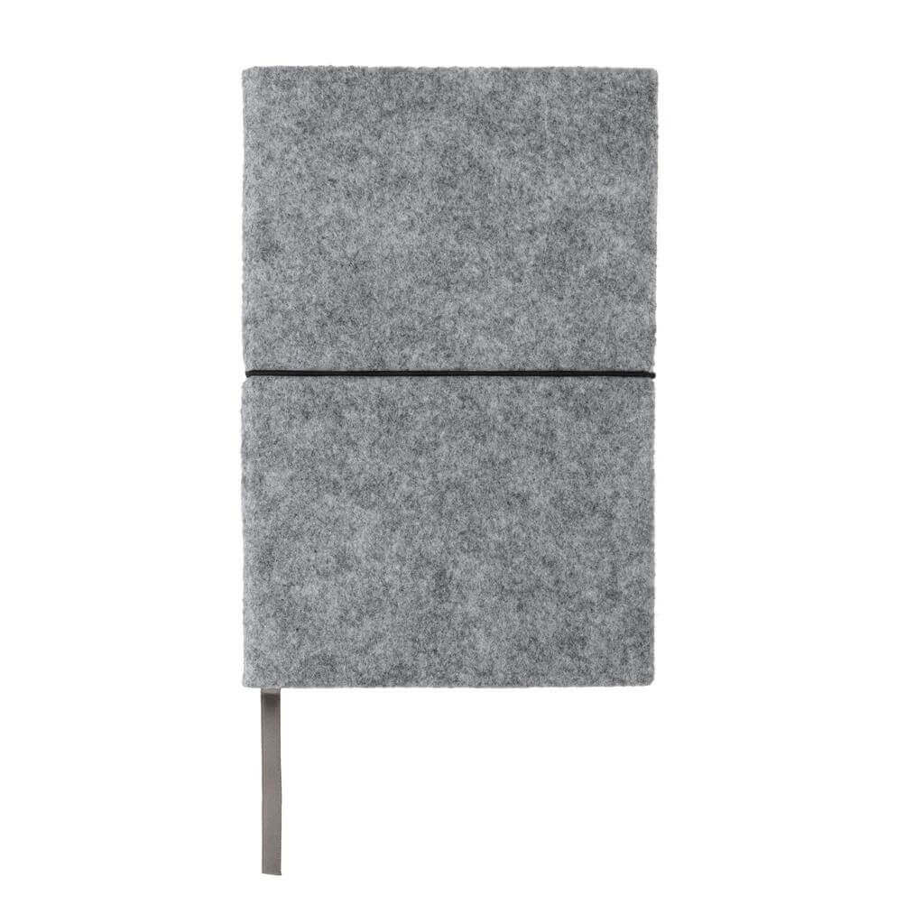 Originálny zápisník s obalom zo štýlovej recyklovanej plsti. Obal aj obsah tvoria GRS recyklované materiály. GRS (Global Recycle Standard) je globálny štandard, ktorý umožňuje overiť použitie recyklovaného materiálu v produkte naprieč celým dodávateľským reťazcom. Celkový podiel recyklátu podľa váhy produktu: 99 %. Obsahuje 80 listov/160 strán linkového papiera s gramážou 70 g/m2.
