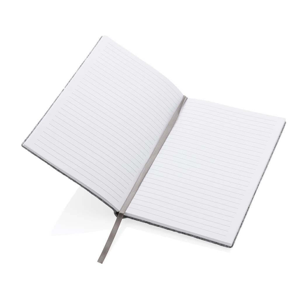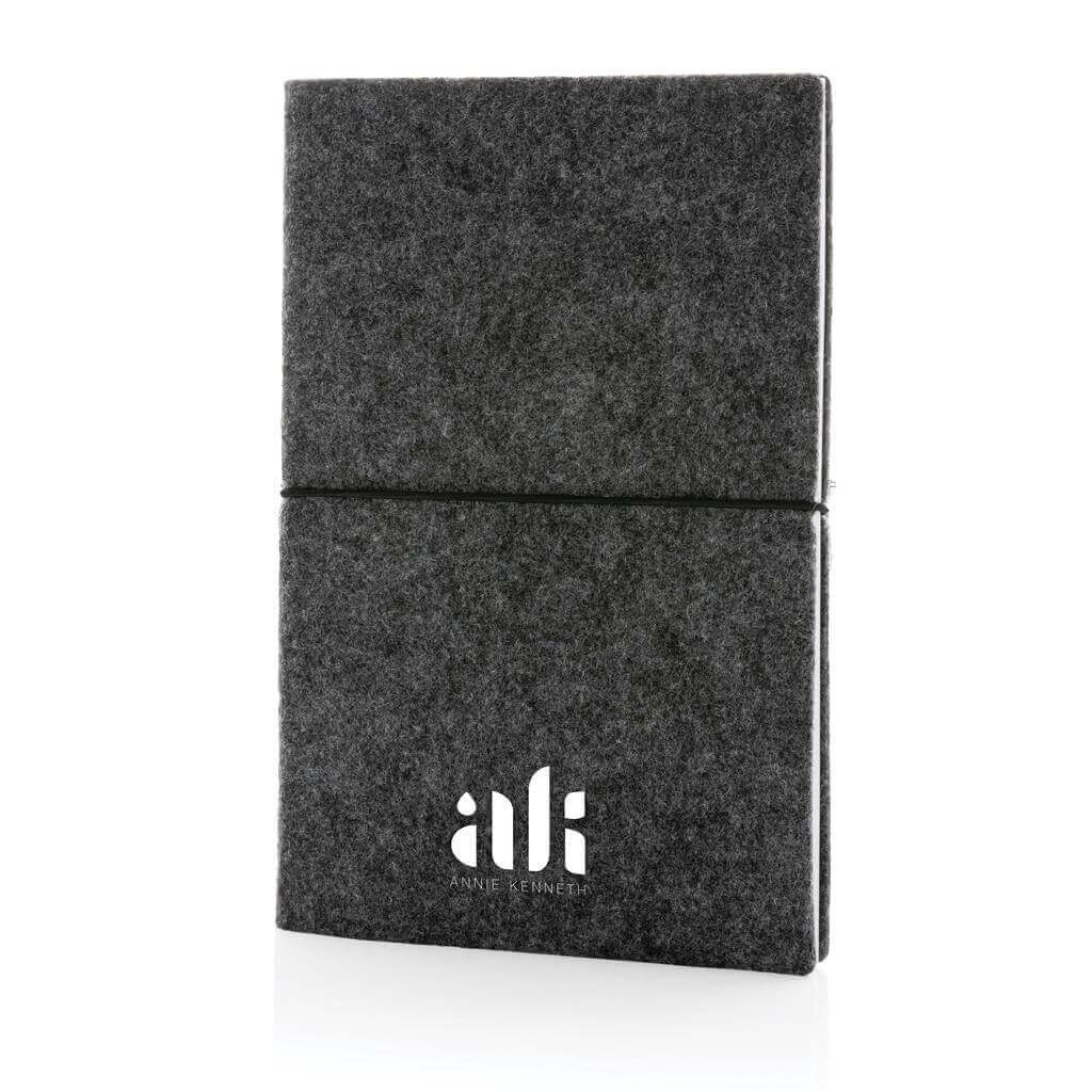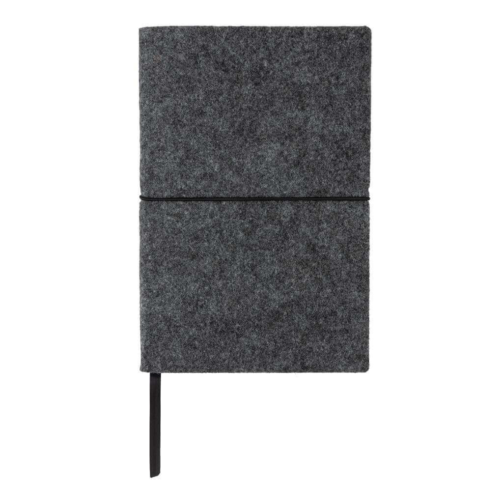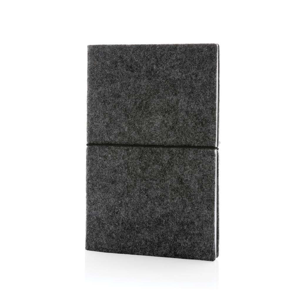 Originálny zápisník s obalom zo štýlovej recyklovanej plsti. Obal aj obsah tvoria GRS recyklované materiály. GRS (Global Recycle Standard) je globálny štandard, ktorý umožňuje overiť použitie recyklovaného materiálu v produkte naprieč celým dodávateľským reťazcom. Celkový podiel recyklátu podľa váhy produktu: 99 %. Obsahuje 80 listov/160 strán linkového papiera s gramážou 70 g/m2.