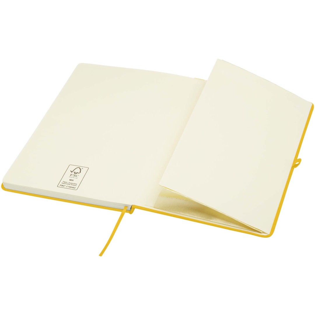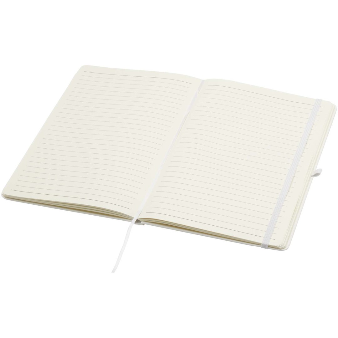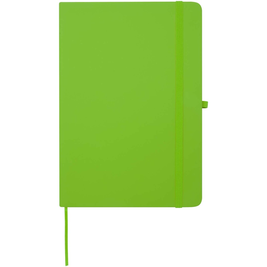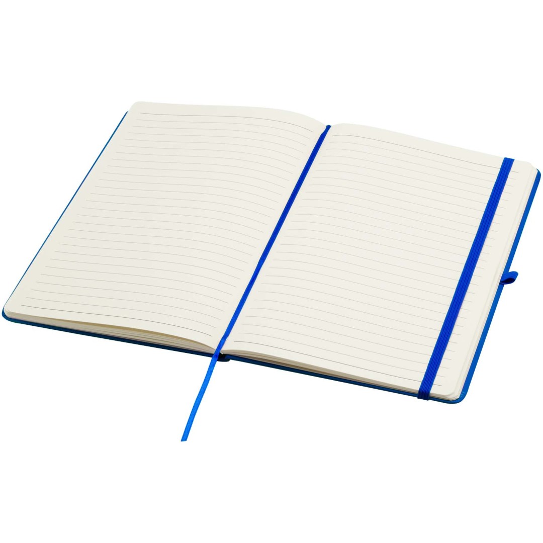 Zápisník Spectrum Plus A5 s pevnou obálkou a zaoblenými rohmi je nielen skvelým pomocníkom v kancelárii, ale aj ideálnou príležitosťou na propagáciu vašej značky. Lepenkový zápisník má na dotyk mäkkú obálku a 80 linkovaných listov v krémovej farbe s gramážou 70 g/m², čo je ideálne na zapisovanie rýchlych nápadov alebo podrobných poznámok. Zápisník má pútko na pero, elastický uzáver, záložku a rozšíriteľné vrecko.
