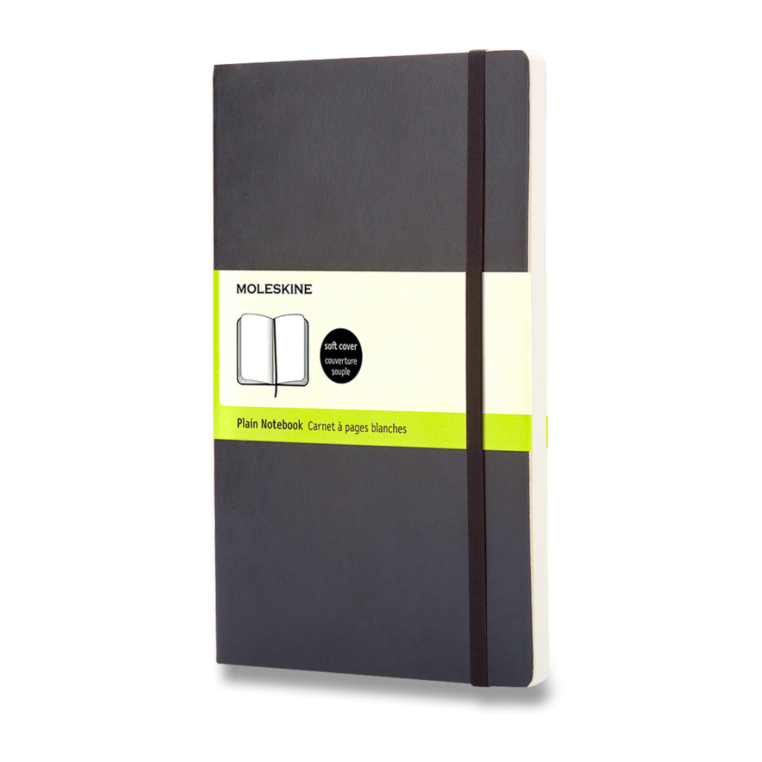 Zápisník s mäkkou, v chrbte šitou väzbou v kartónových doskách, obopnutý pružnou páskou proti samovoľnému otváraniu. Zápisník je vybavený vreckom na vizitky a drobnosti, ktoré je vyrobené z tkaniny a kartónu, textilnou záložkou a letákom s históriou Moleskine. Gramáž papiera 70 g/m², neobsahuje kyseliny.