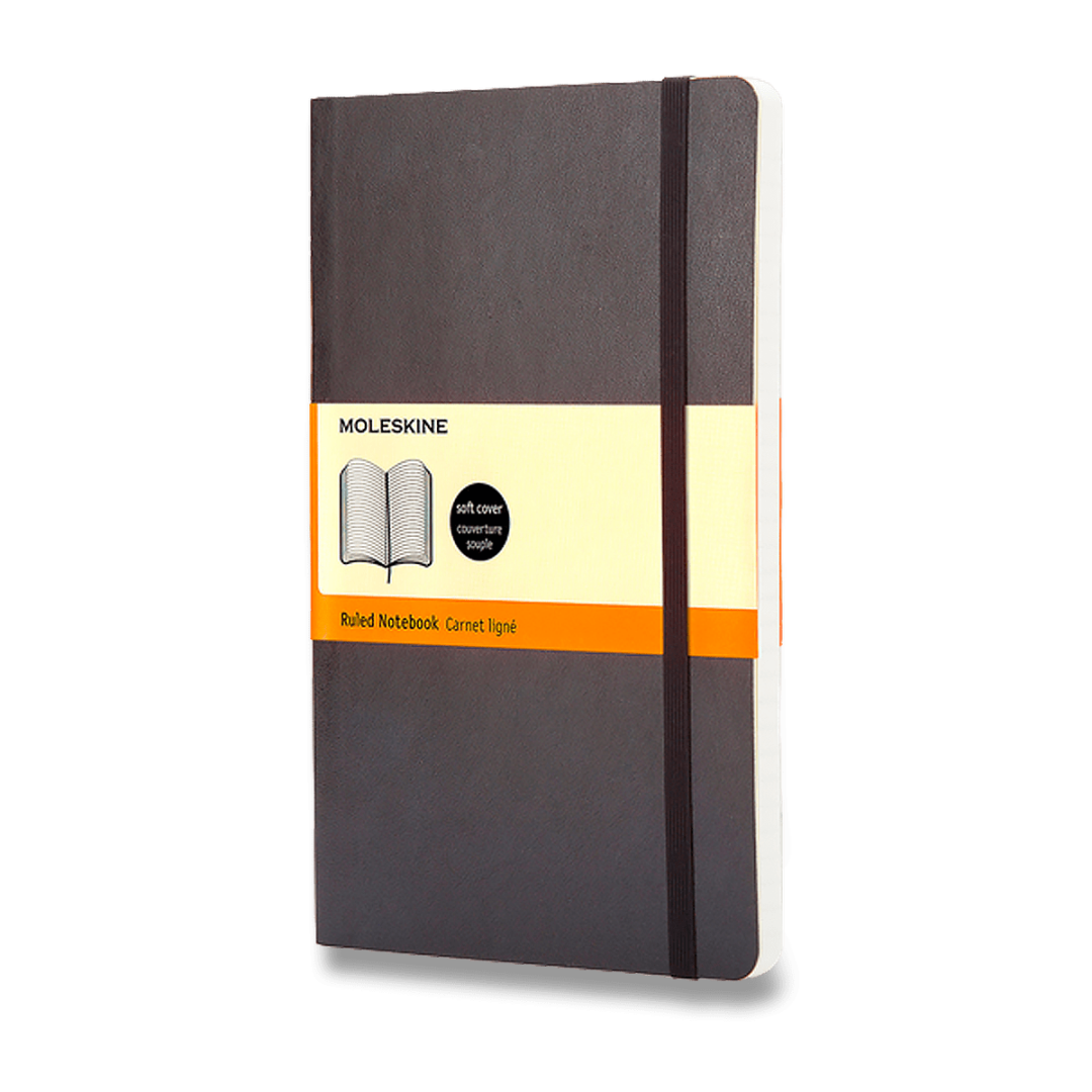 Zápisník s mäkkou, v chrbte šitou väzbou v kartónových doskách, obopnutý pružnou páskou proti samovoľnému otváraniu. Zápisník je vybavený vreckom na vizitky a drobnosti, ktoré je vyrobené z tkaniny a kartónu, textilnou záložkou a letákom s históriou Moleskine. Gramáž papiera 70 g/m², neobsahuje kyseliny.