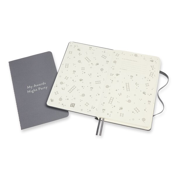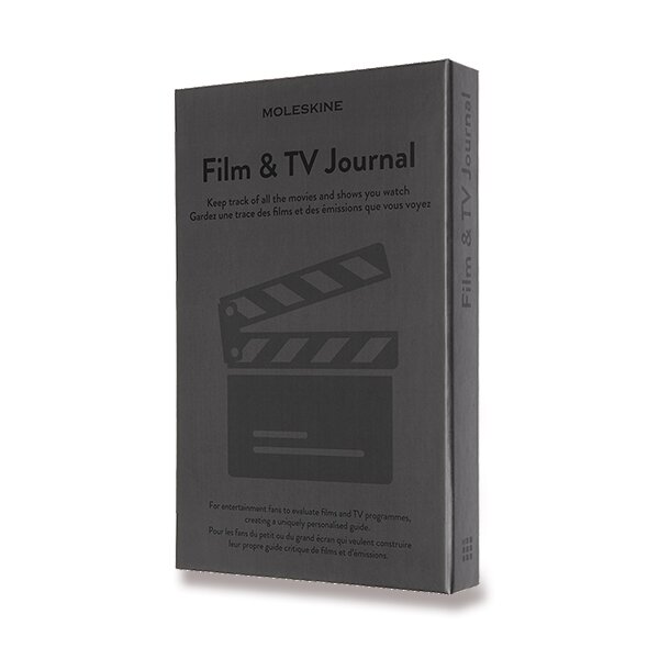 Zápisník s pevnou, v chrbte šitou väzbou v kartónových doskách s reliéfnym zdobením. Obopína ho pružná gumička proti samovoľnému otváraniu. Zápisník je vybavený 2 textilnými záložkami, dvojitým vnútorným vreckom, farebnými samolepkami a letákom s históriou MOLESKINE. V úvodnej časti nájdete zoznam filmových festivalov, glosár a míľniky z histórie kinematografie. Zápisník je rotulený do 3 tematických sekcií s osobitným rozvrhnutím strán (zoznam sledovaných alebo obľúbených filmov a seriálov, kľúčové informácie, hodnotenie, dojmy a reciénzie) a obsahuje aj prázdne strany.