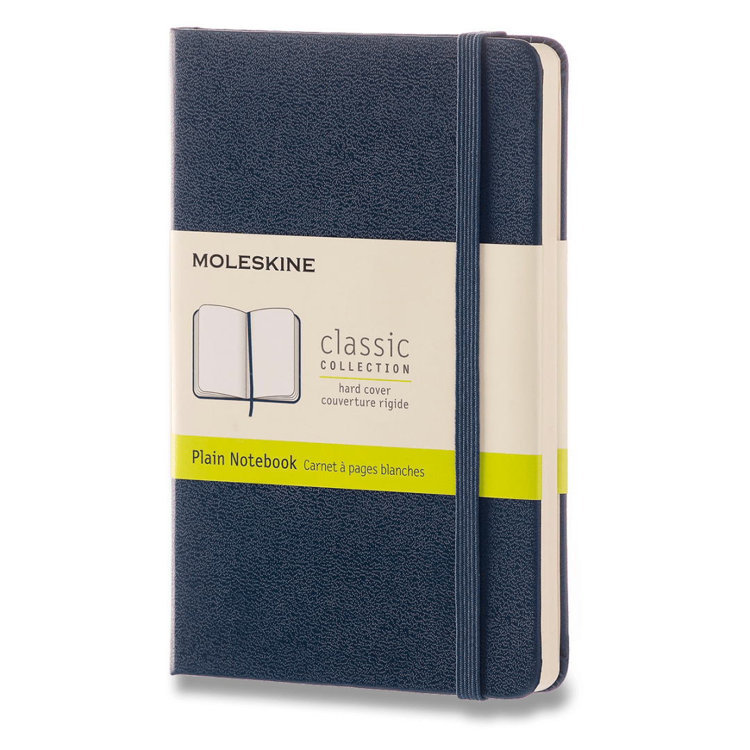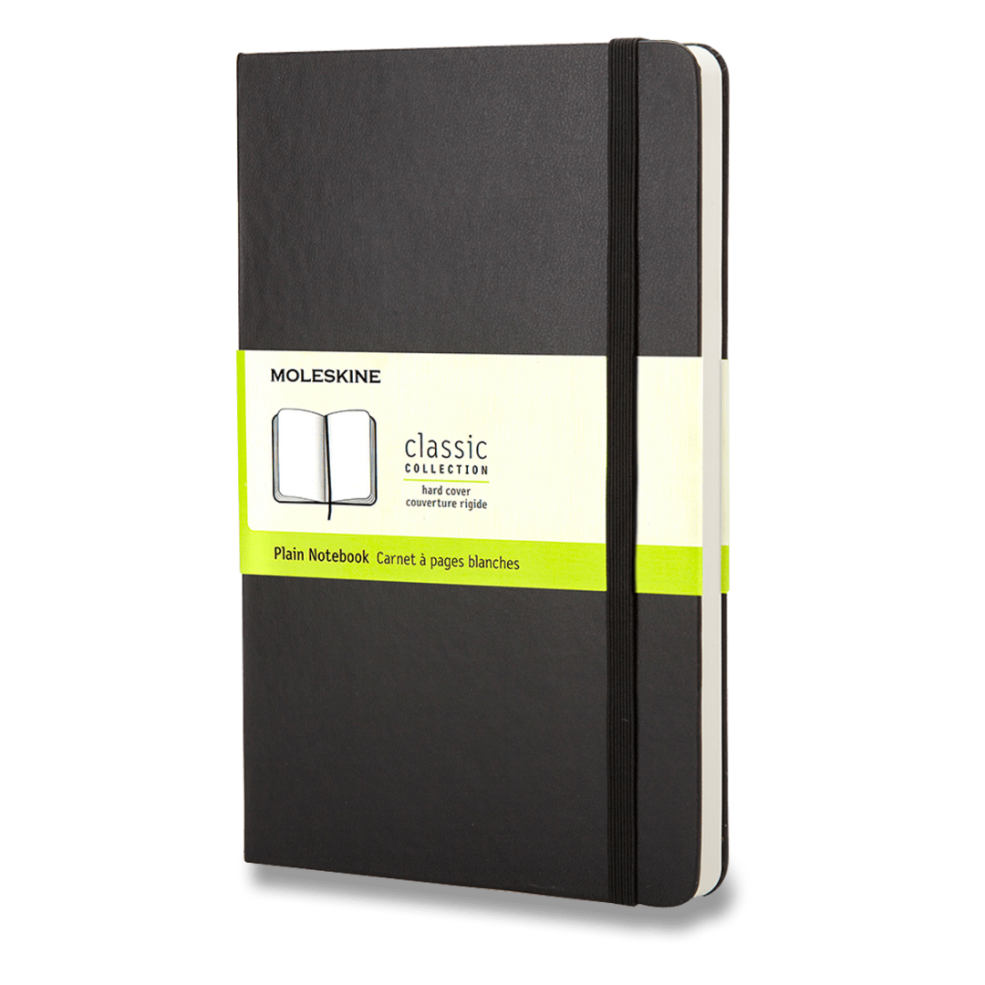 Zápisník s pevnou, v chrbte šitou väzbou v kartónových doskách, obopnutý pružnou páskou proti samovoľnému otváraniu. Zápisník je vybavený zakladačom poznámok, ktorý je vyrobený z tkaniny a kartónu, textilnou záložkou a letákom s históriou MOLESKINE . Gramáž papiera 70 g/m , neobsahuje kyseliny.