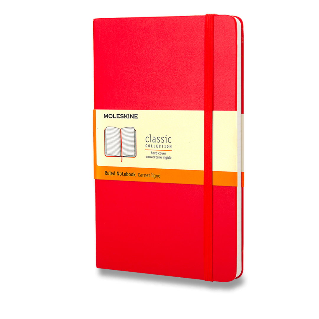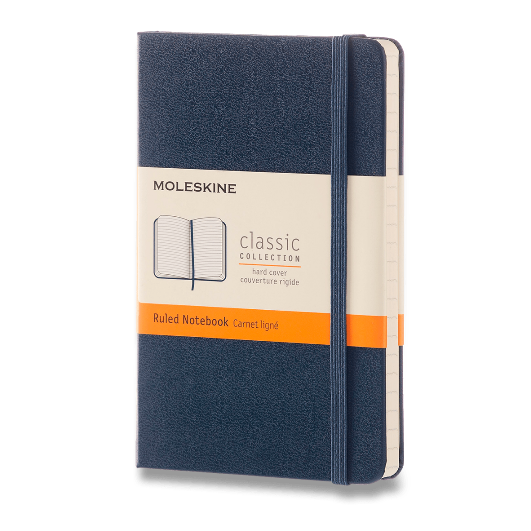 Zápisník s pevnou, v chrbte šitou väzbou v kartónových doskách, obopnutý pružnou páskou proti samovoľnému otváraniu. Zápisník je vybavený vreckom na vizitky a drobnosti, ktoré je vyrobené z tkaniny a kartónu, textilnou záložkou a letákom s históriou MOLESKINE. Gramáž papiera 70 g/m2, neobsahuje kyseliny.