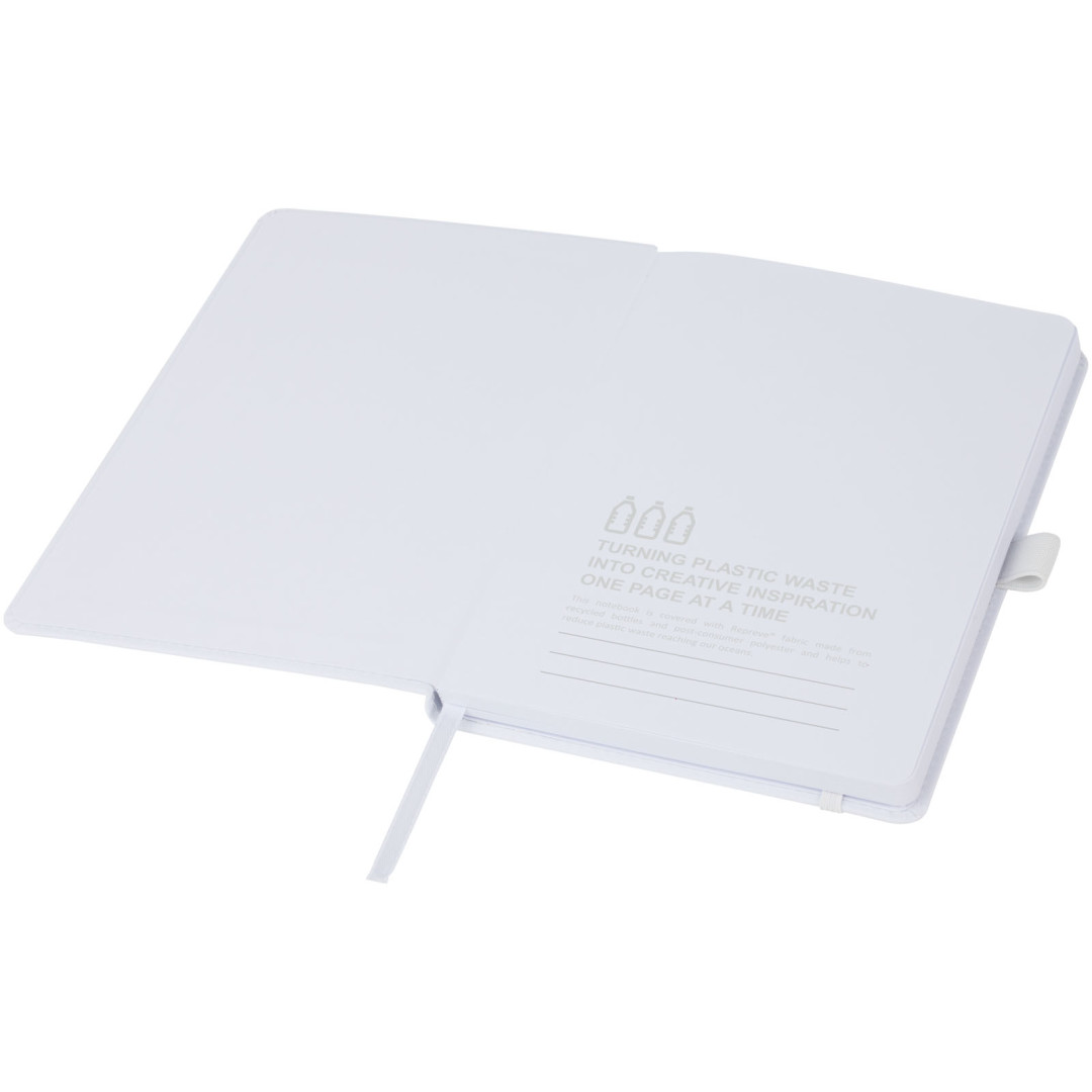 Zápisník s pevnou obálkou Thalaasa je vyrobený z recyklovaného plastu, ktorý bol zozbieraný z pobrežných oblastí. Vďaka tomu je tento zápisník udržateľnejšou voľbou, pretože pomáha znižovať množstvo plastového odpadu. Obsahuje 80 linkovaných listov s 80 g/m2 z recyklovaného papiera, pútko na pero, elastické pútko na uzavretie, stužkovú záložku a organizér.
