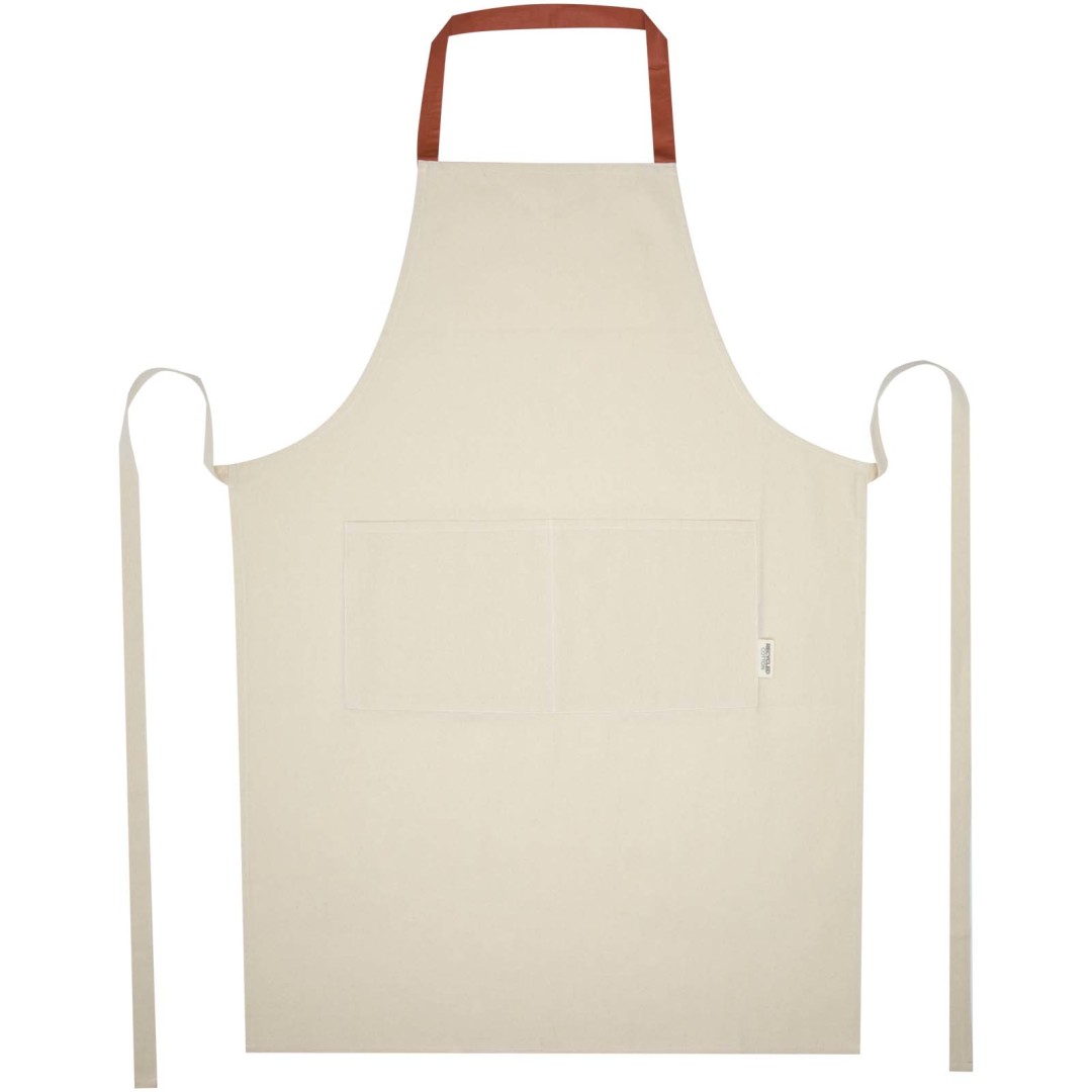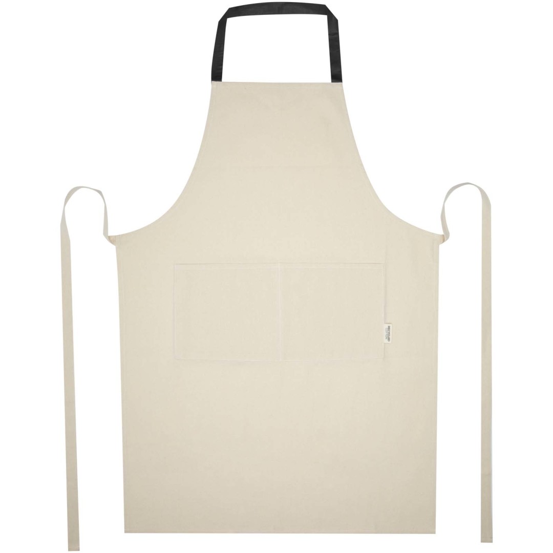 Zástera Nia je vyrobená zo 100% recyklovanej bavlny s certifikáciou GRS s gramážou 200 g/m². Táto zástera v prírodnej bavlnenej farbe s krčným úväzom v kontrastnej farbe ochráni vaše oblečenie pri varení. Zástera Nia s dvoma vreckami vedľa seba o celkovej veľkosti 45 × 20 cm a 1 meter dlhým chrbtovým úväzom zaisťuje praktickosť aj štýl v kuchyni.
