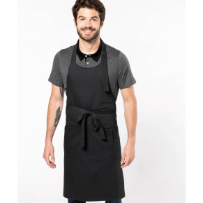 Materiál: 280g/m2, 100% bavlna. Slučka za krk s kovovou sponou pre nastavenie dĺžky, veľké predné vrecko s 2 priehradkami, rozmery: 90x76cm, vrecko na bruchu: 20cm šírka, 31,5cm dĺžka, prateľné na 60 °, priemyselné pranie prateľné na 85 °, možno sušiť v sušičke teplote.