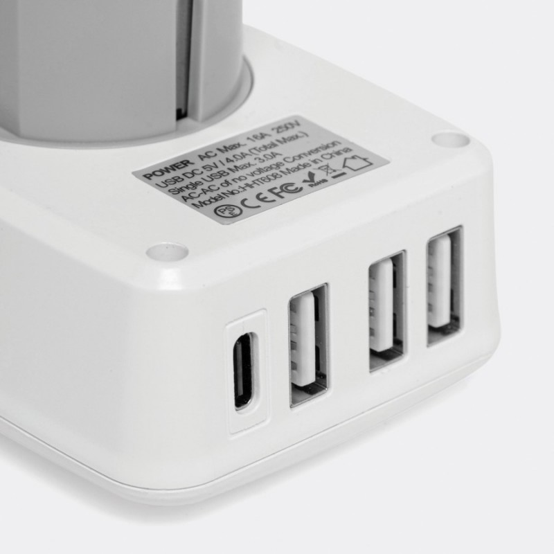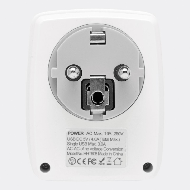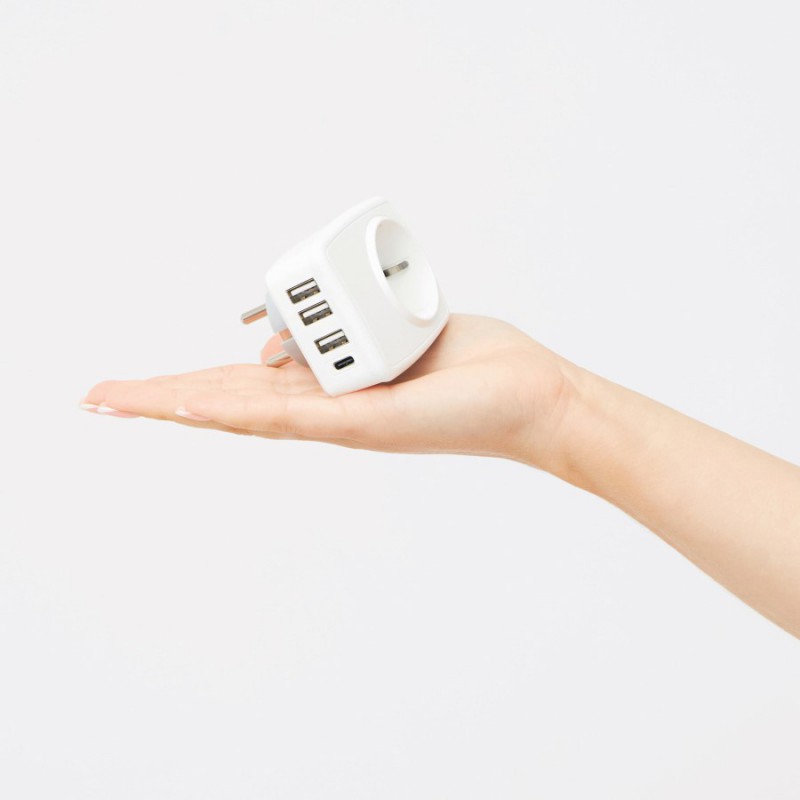 Zásuvkový napájací adaptér USB ENDLESS POWER PRO: 1 uzemnená zásuvka Schuko s detskou poistkou, 3 porty USB-A, 1 port USB-C, výstupný výkon USB: max. 3 A, výstupný výkon zásuvky Schuko max. 4 000 W, modrá stavová LED dióda, nevhodné pre Veľkú Britániu.