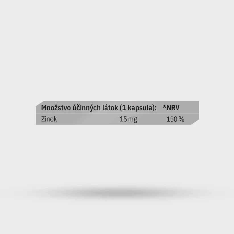 Komplexný výživový doplnok so zinkom v chelátovej forme bisglycinátu, ktorý zaručuje vysokú vstrebateľnosť. Zinok prispieva k správnej funkcii imunitného systému, zdravej pokožke, vlasom a nechtom, ako aj k normálnej syntéze DNA a plodnosti. Zloženie: inulín (vláknina z koreňa čakanky), vegánska kapsula (HPMC), bisglycinát zinočnatý.