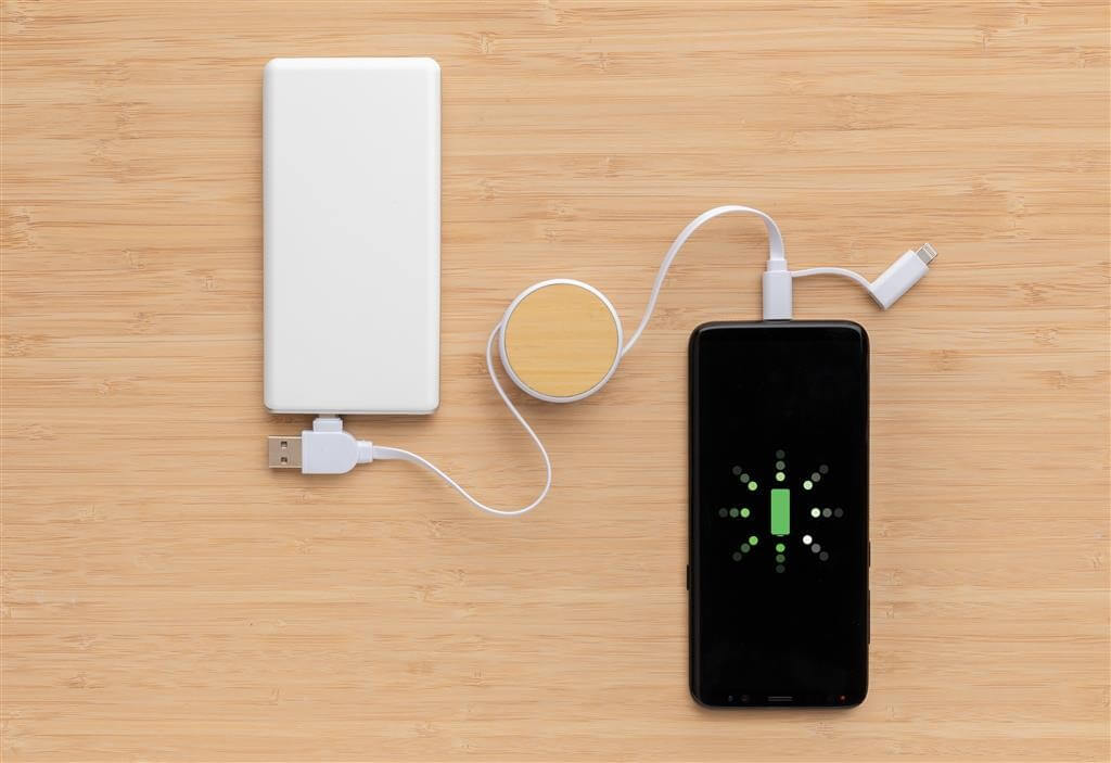 Zvinovací univerzálny nabíjací kábel s 5 konektormi: USB C/USB A vstup, USB C/micro USB/iOS výstup. USB C je vhodné na nabíjanie moderných telefónov, ale aj MacBookov. USB A má dvojakú funkciu (vstup aj výstup) pre nabíjanie akéhokoľvek zariadenia z akéhokoľvek iného zdroja. Puzdro vyrobené z FSC certifikovaného bambusu a RCS certifikovaného ABS. Káble vyrobené z RCS certifikovaného TPE. Maximálna dĺžka: 100 cm. RCS certifikácia zaisťuje garanciu použitia recyklovaného materiálu vďaka transparentnému prehľadu nad dodávateľským reťazcom. Balené v darčekovom obale z FSC kraftového papiera. Bez PVC.