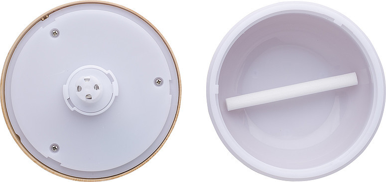 Zvlhčovač vzduchu so vzhľadom dreva. S LED svetlami meniacimi farbu. Pre izby do 25m2. Dodáva sa bez tekutiny, pridajte vlastnú vodu alebo vôňu. Súčasťou balenia sú dve huby pre lepší výkon, jedna inštalovaná a jedna náhradná. Jednotlivo balené v hnedej kartónovej krabičke. Rozmery: 9.8 x 10 x 10 cm
